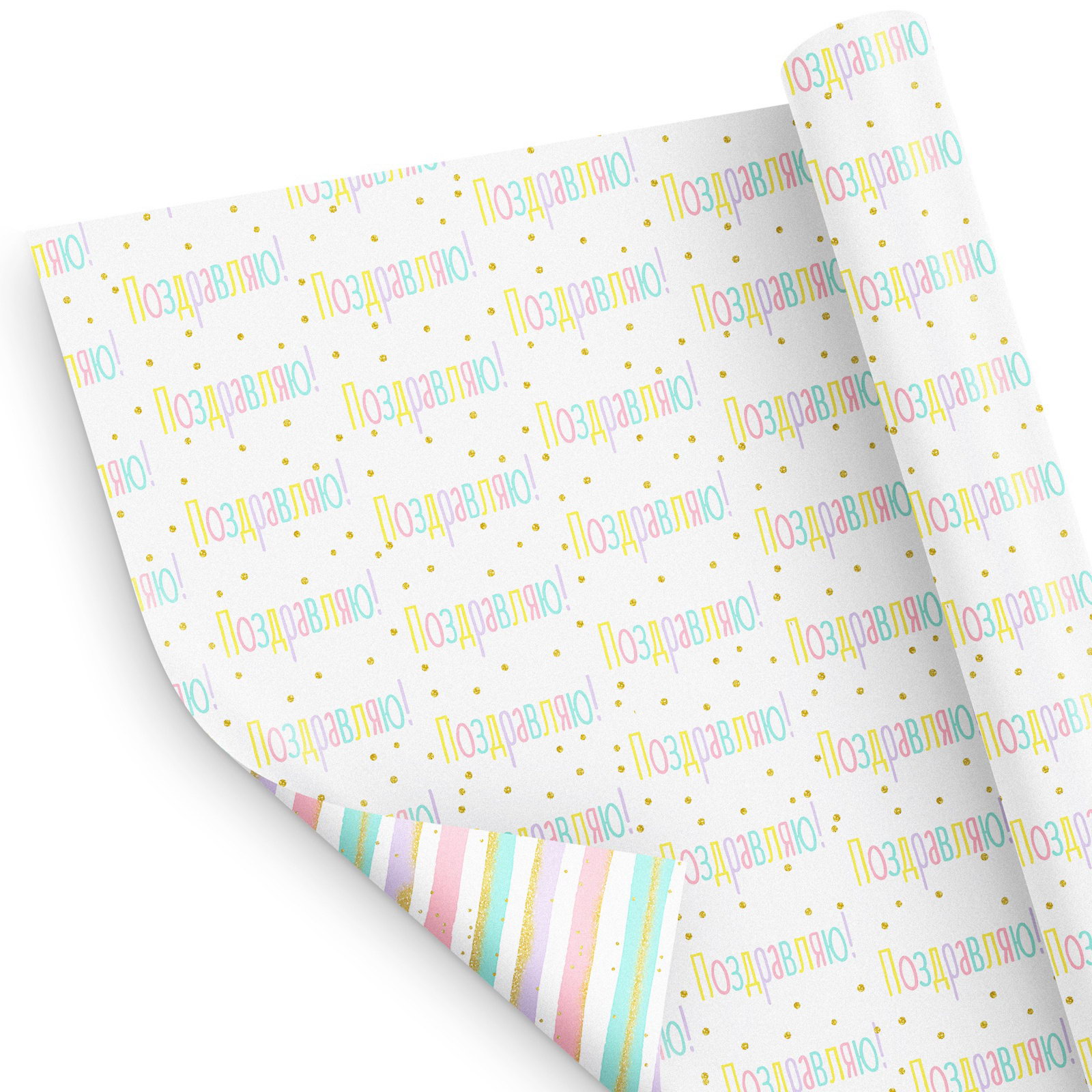 Бумага глянцевая двухсторонняя "Поздравляю", 50 x 70 см, Дарите Счастье, Россия