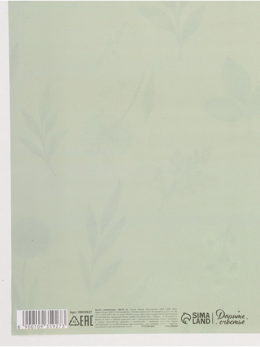 Цвет: Бежевый, Зелёный Тематика: Растительный орнамент, Цветочно-растительная Размер упаковки: 0.6 x 0.6 x 69.5 см. tnved: 4811600000 Тип листа: Двусторонний Тематика праздника: Универсальная тематика Дизайн: С рисунком, надписью Размер, м: 0.7 x 1 Вид: В листах Плотность, г/?2: 75 | ||