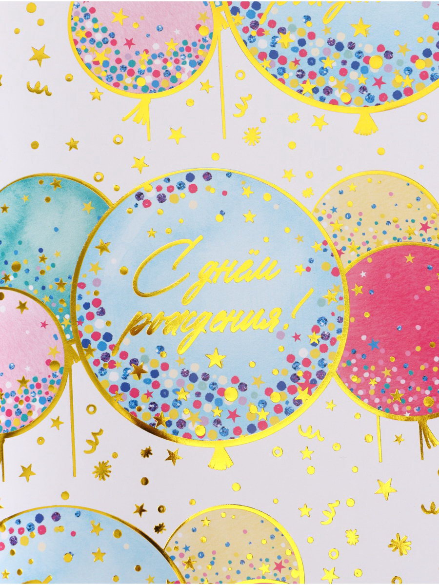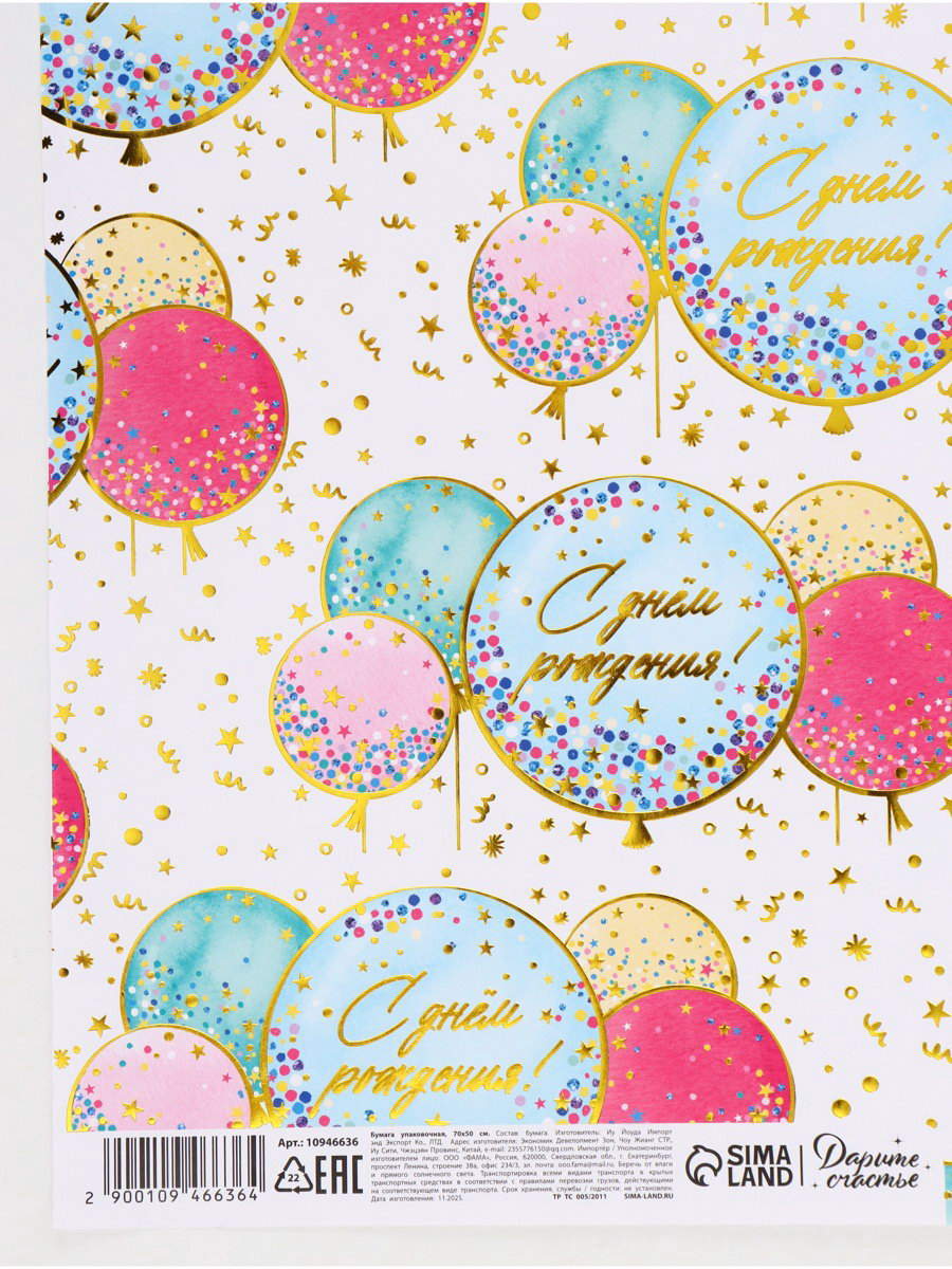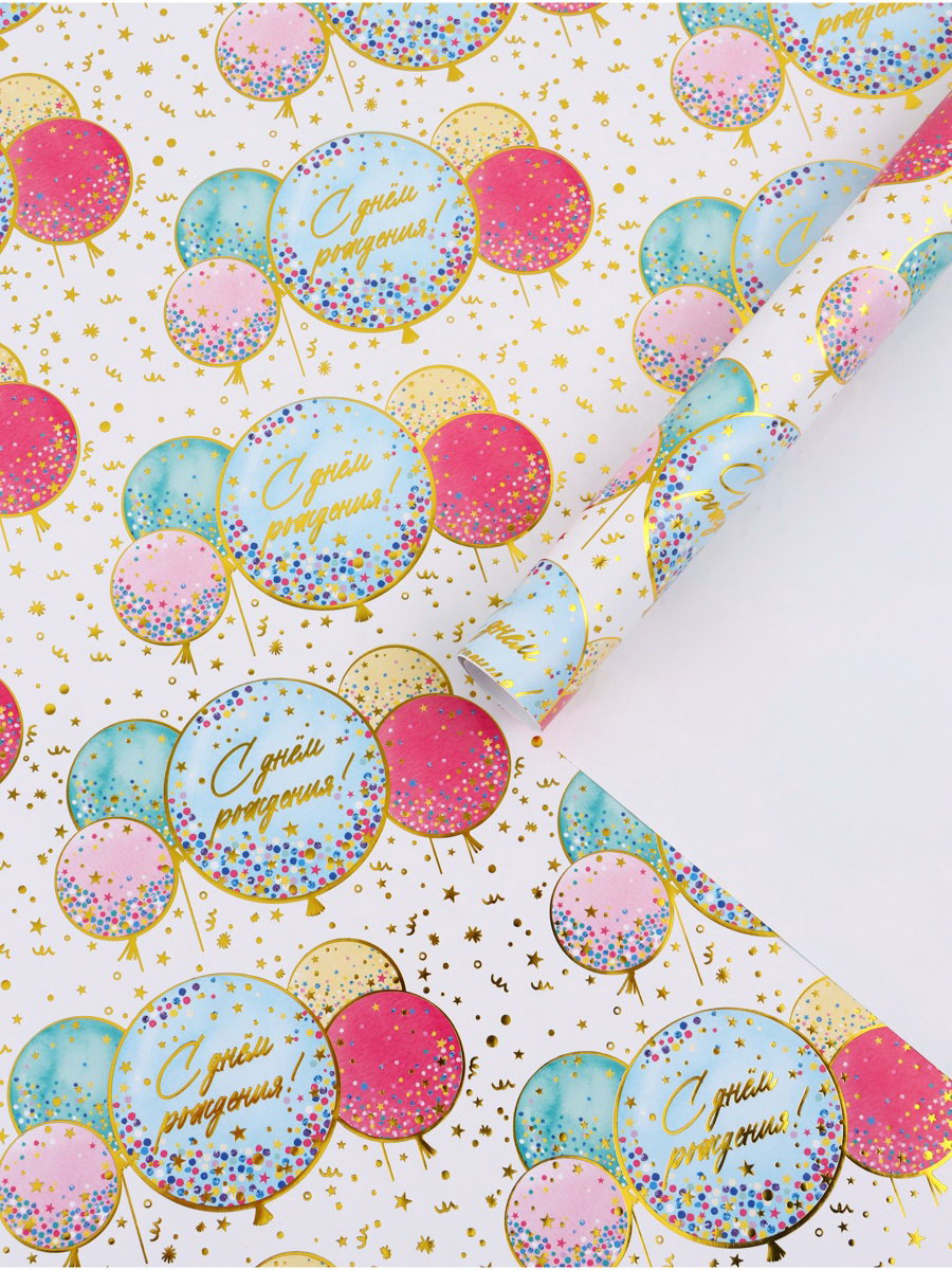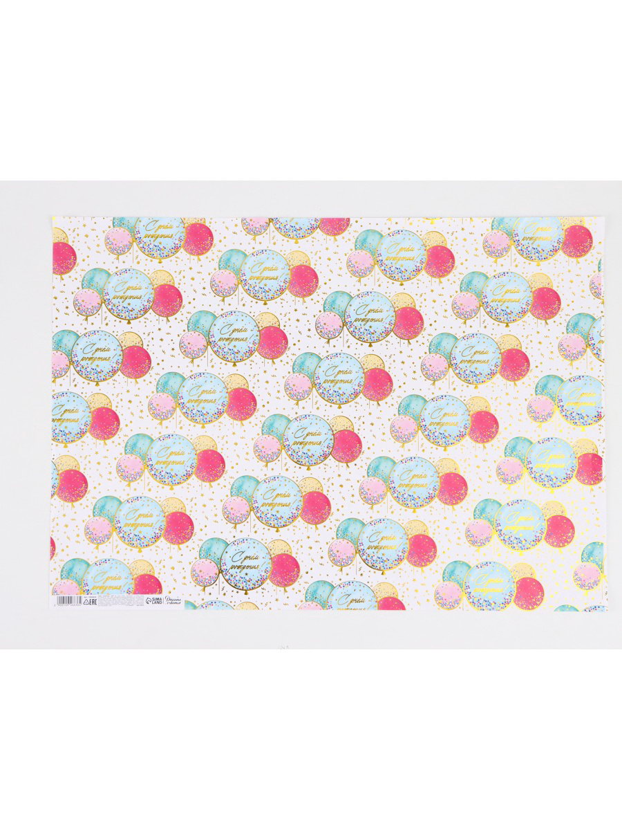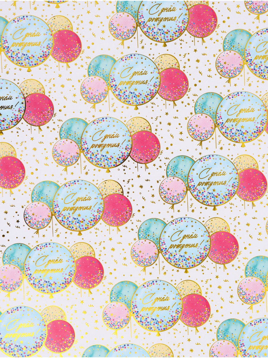 Бумага глянцевая "С Днём рождения", шары, тисненеие, 50 x 70 см, 70x50x0.1 см., Дарите Счастье, Китай