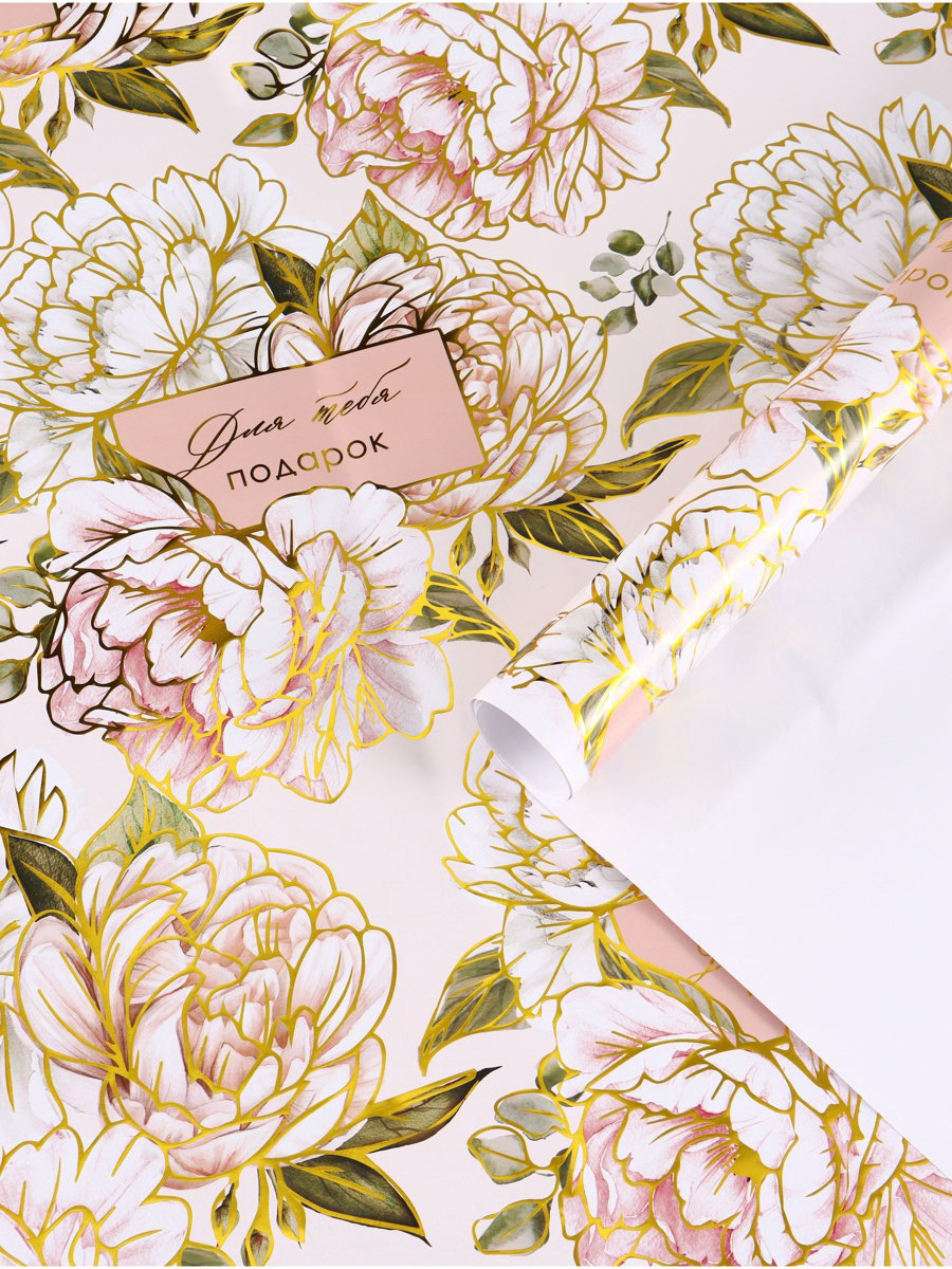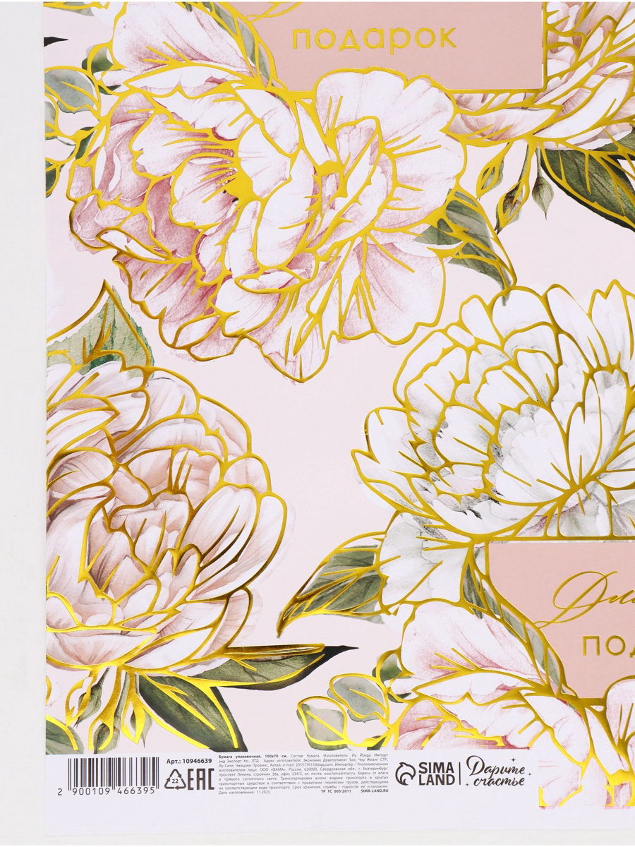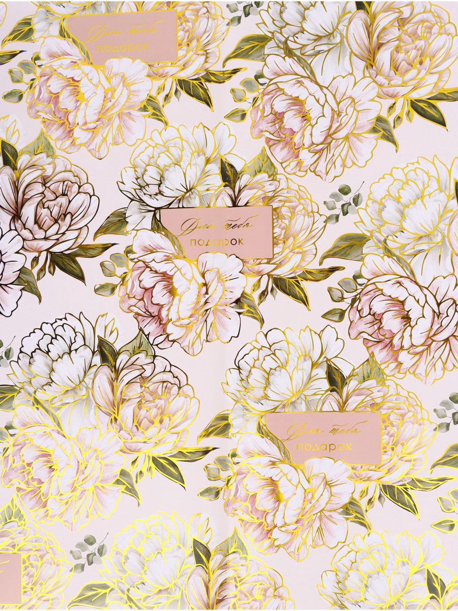 Бумага глянцевая "Подарок для тебя", цветы, тисненеие, 70 x 100 см, 100x70x0.1 см., Дарите Счастье, Китай