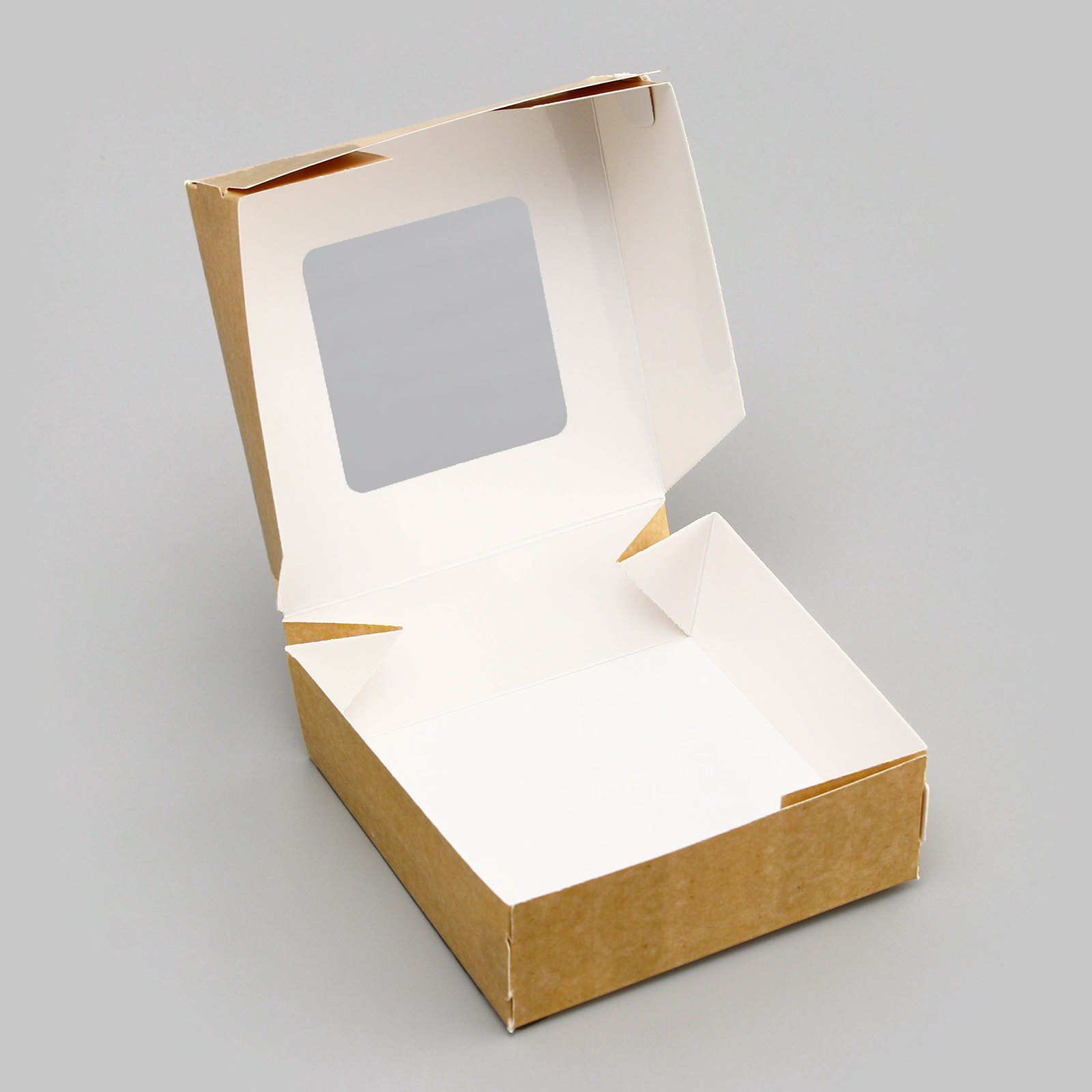 Коробка складная, с окном, крафт, 11.5x11.5x4 см, 11.5x11.5x4 см., UPAK LAND, Китай