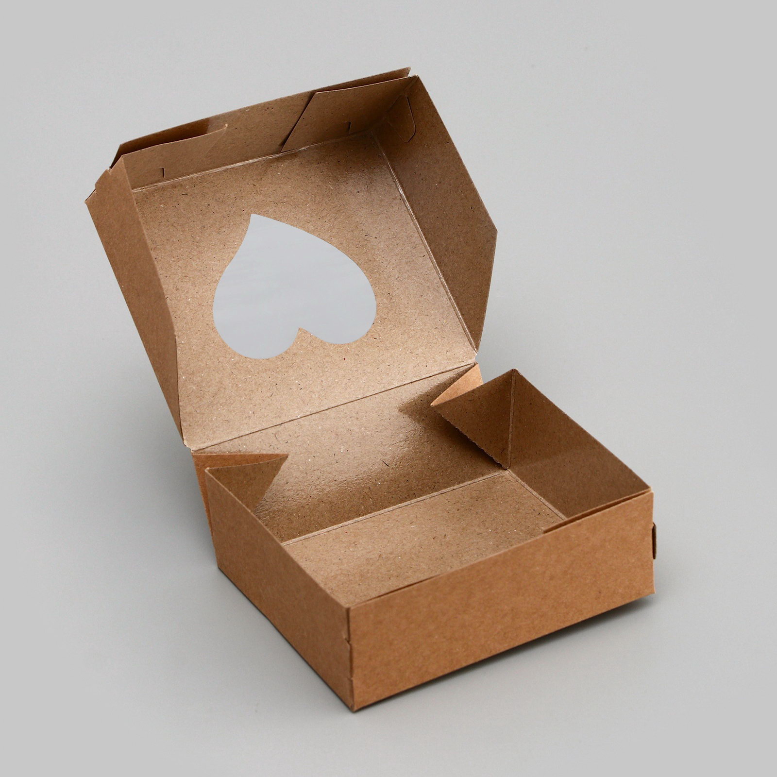 Коробка складная "Сердца", крафт, с окном, 10x8x3.5 см, 8x10x3.5 см., UPAK LAND, Китай