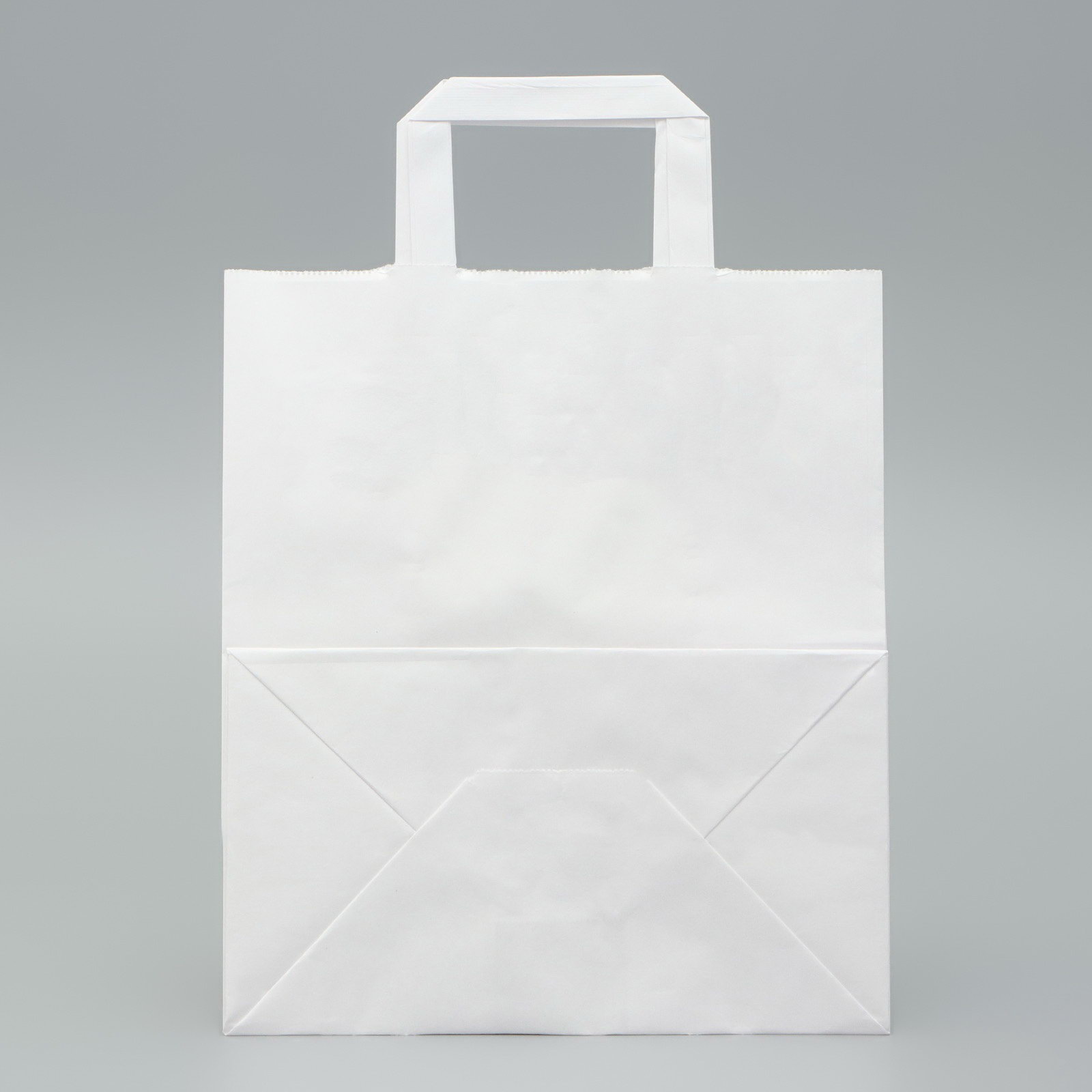 Пакет крафт без печати, белый, плоская ручка 24x14x24 см, UPAK LAND, Россия