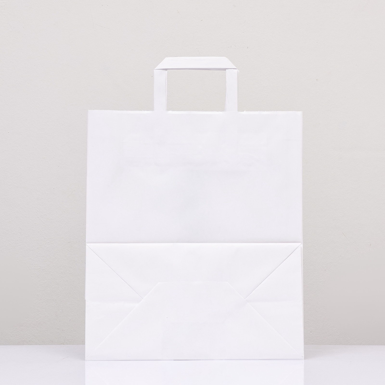 Пакет крафт без печати, белый, плоская ручка 28x15x32 см, UPAK LAND, Россия