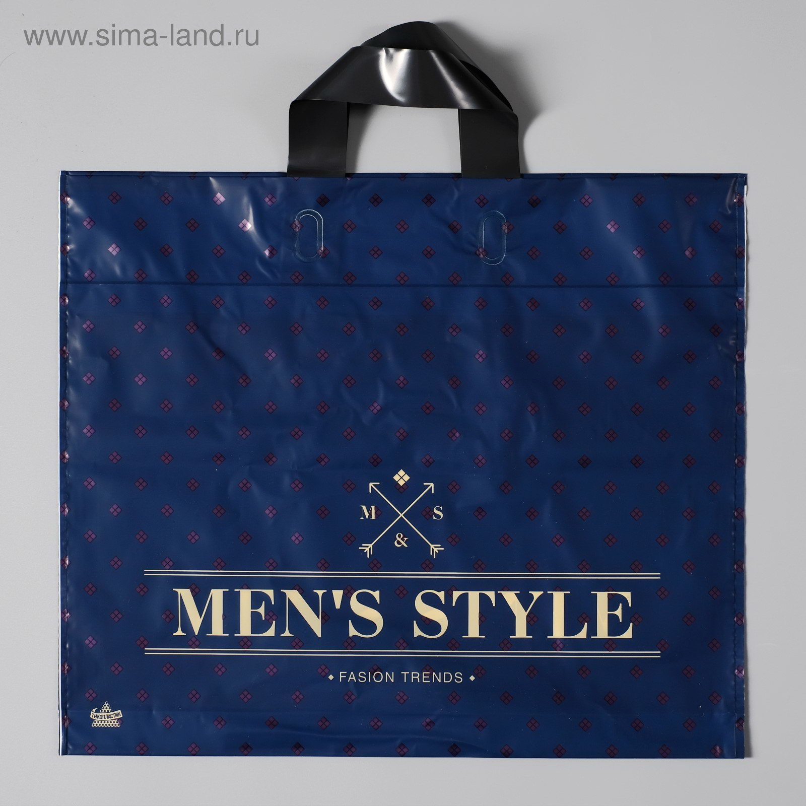 Пакет "Мужской стиль", полиэтиленовый с петлевой ручкой, синий, 34х40 см, 70 мкм, ТикоПластик, Россия
