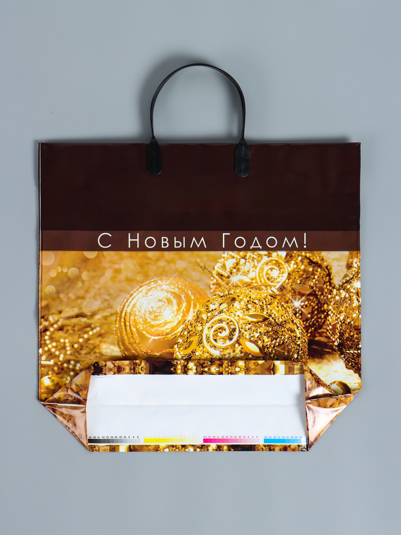 Пакет подарочный новогодний "Золотая сказка", полиэтиленовый с пластиковой ручкой, 38x35 см, 37x35 см., Интерпак, Россия