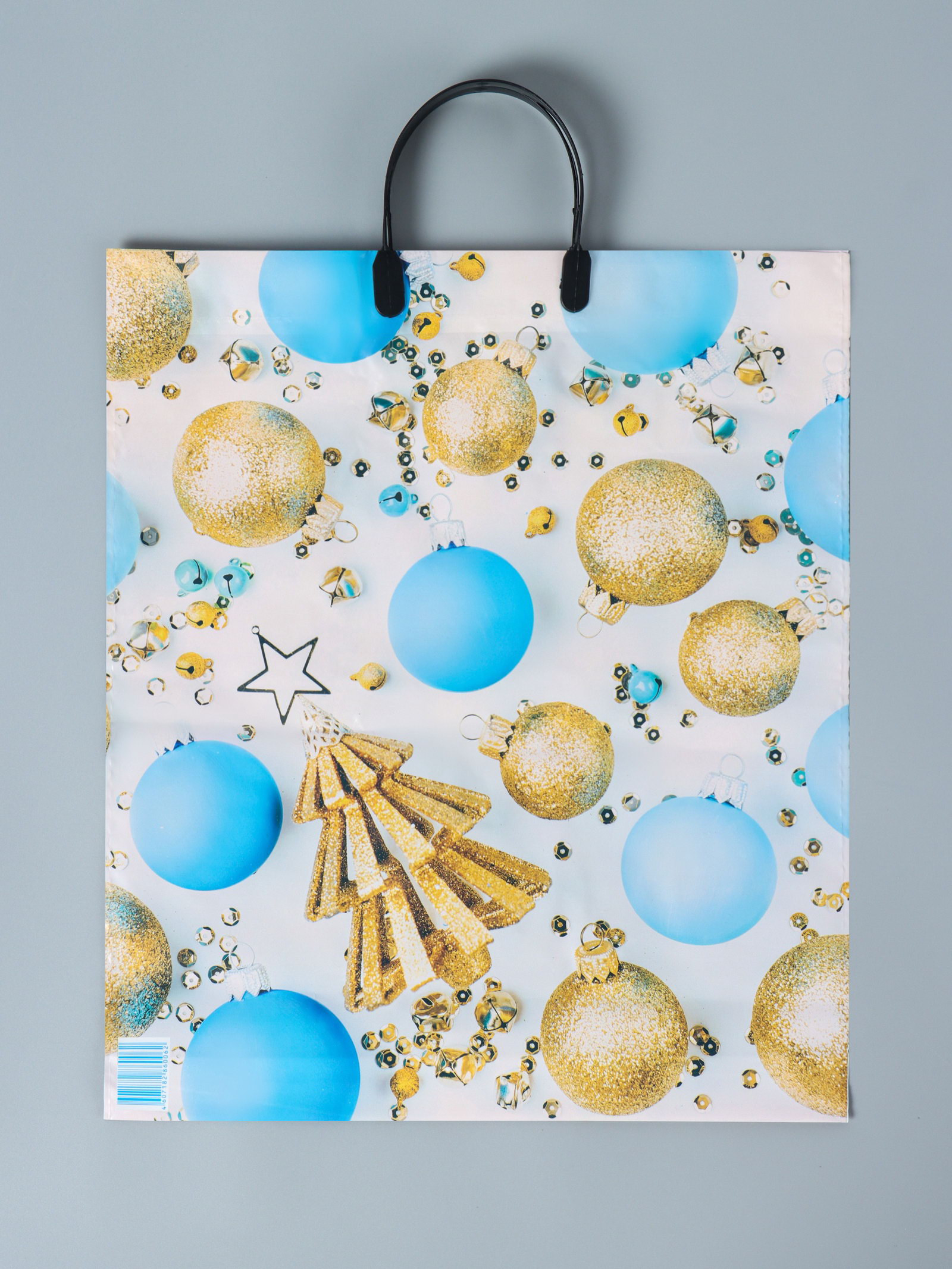 Пакет новогодний "Елочка с шарами", полиэтиленовый с пластиковой ручкой, 38x45 см, Россия