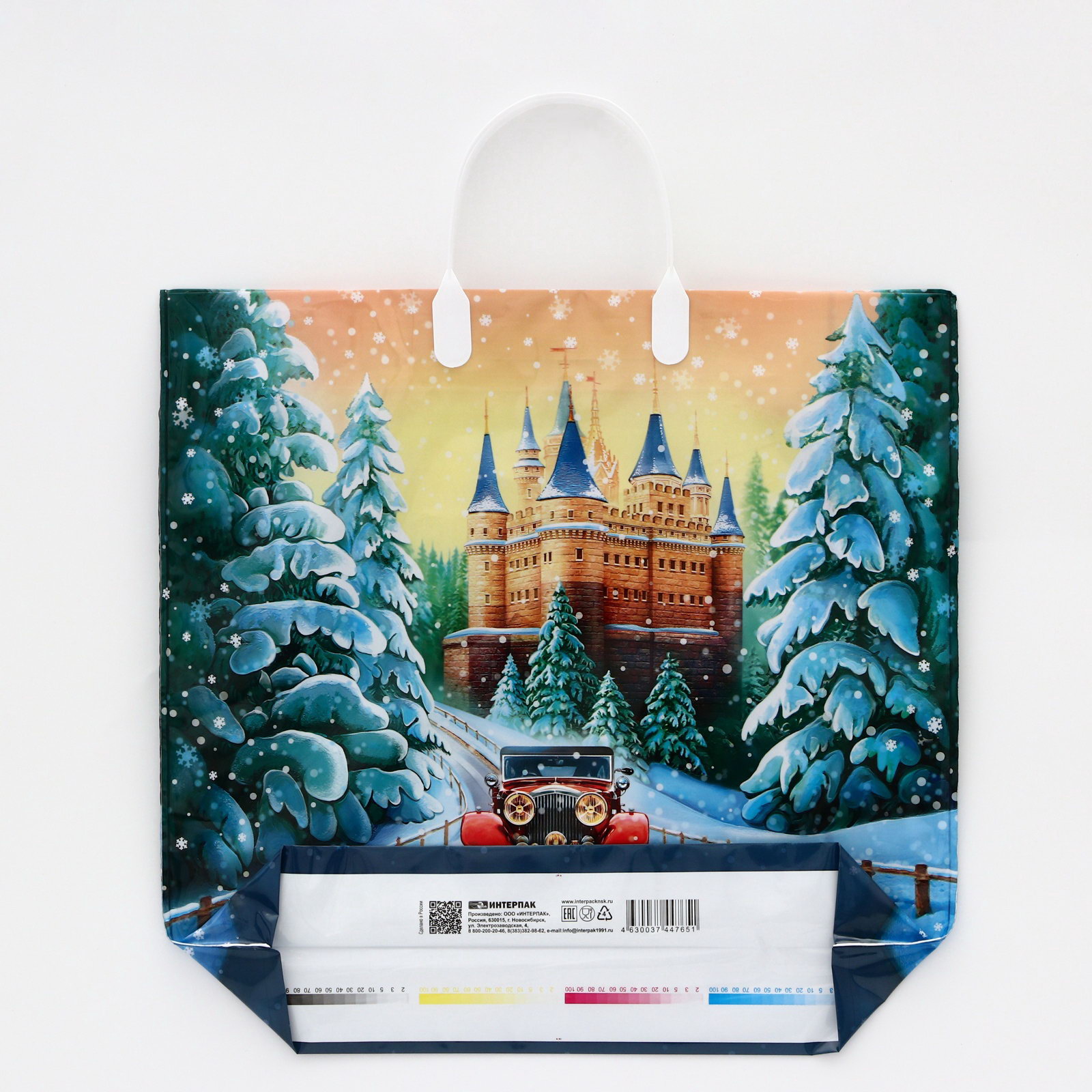 Пакет подарочный новогодний "Сказочный путь", полиэтиленовый с пластиковой ручкой, 38x35 см, 90 мкм, Россия