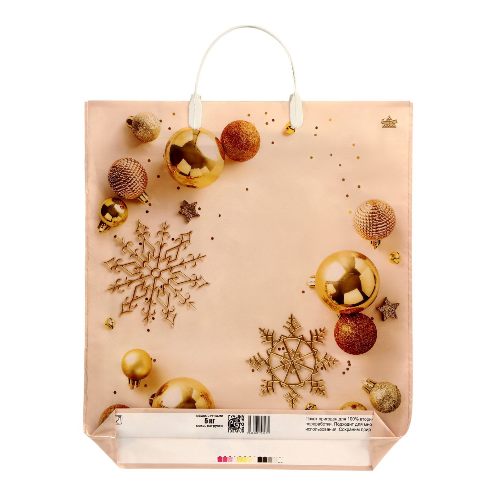 Пакет подарочный новогодний "Новогодний блеск", полиэтиленовый с пластиковой ручкой, 44x39 см, 100 мкм, Россия