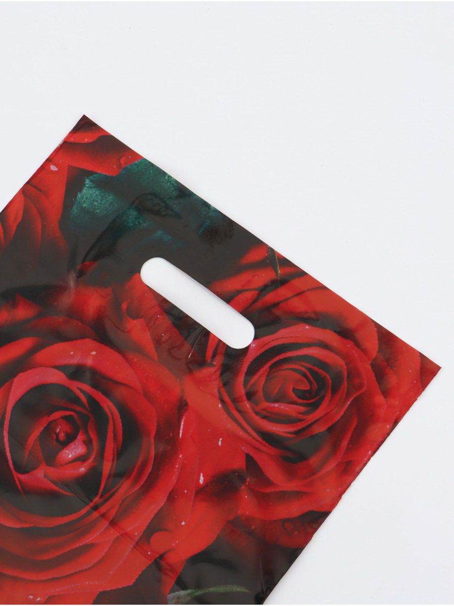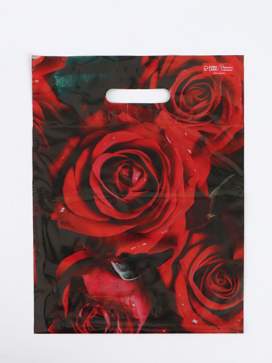 Пакет "Алые розы", полиэтиленовый с вырубной ручкой, 30x40 см, 50 мкм, UPAK LAND, Россия