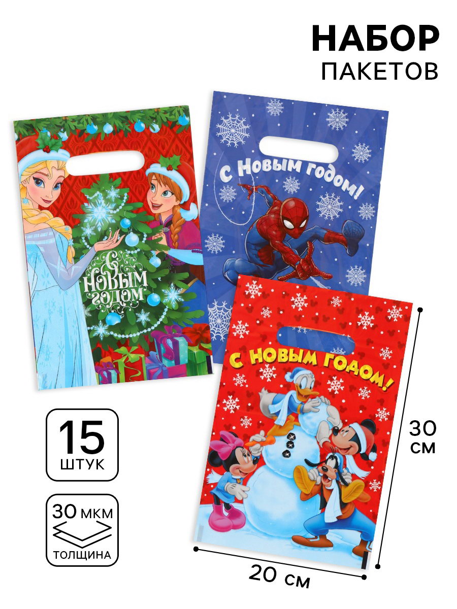 Подарочные пакеты, полиэтилен, набор 15 шт. "Новый год", Disney, Россия