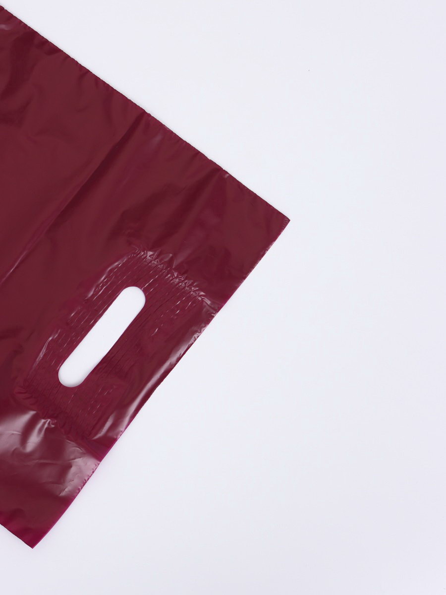Пакет полиэтиленовый с вырубной ручкой, Винно-Бордовый 30x40 см, 30 мкм, Россия