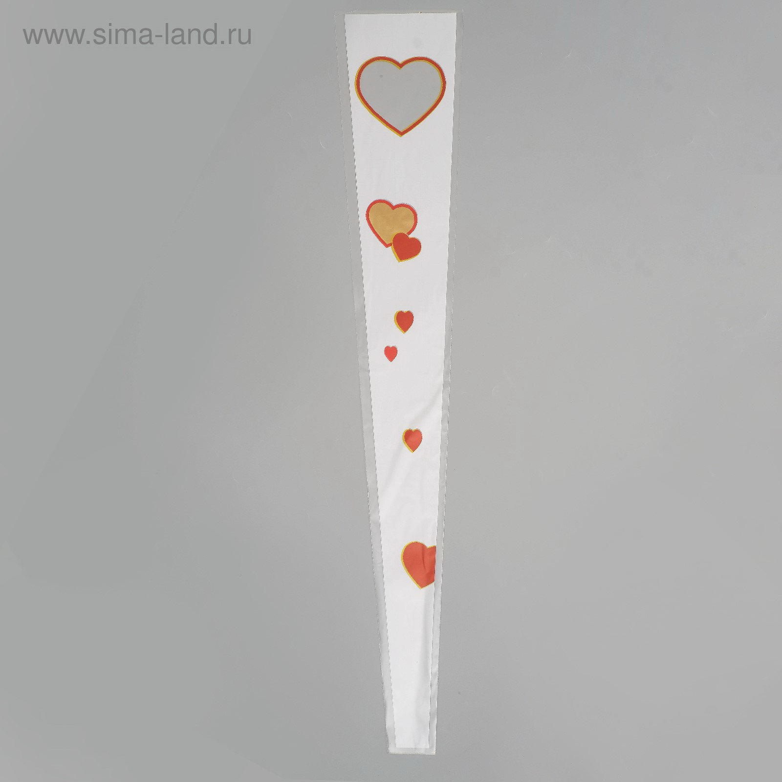 Пакет для цветов конус "Сердца", белый, 15x80 см, Россия