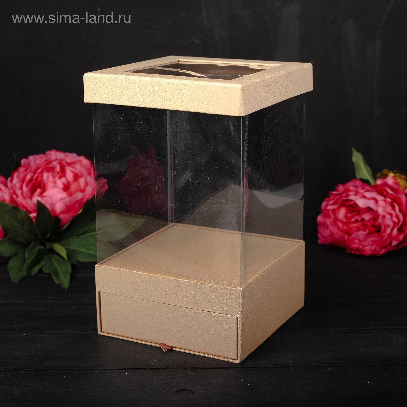 Коробка подарочная, бежевый, 18 x 18 x 8 см, 18x18x8 см., Китай