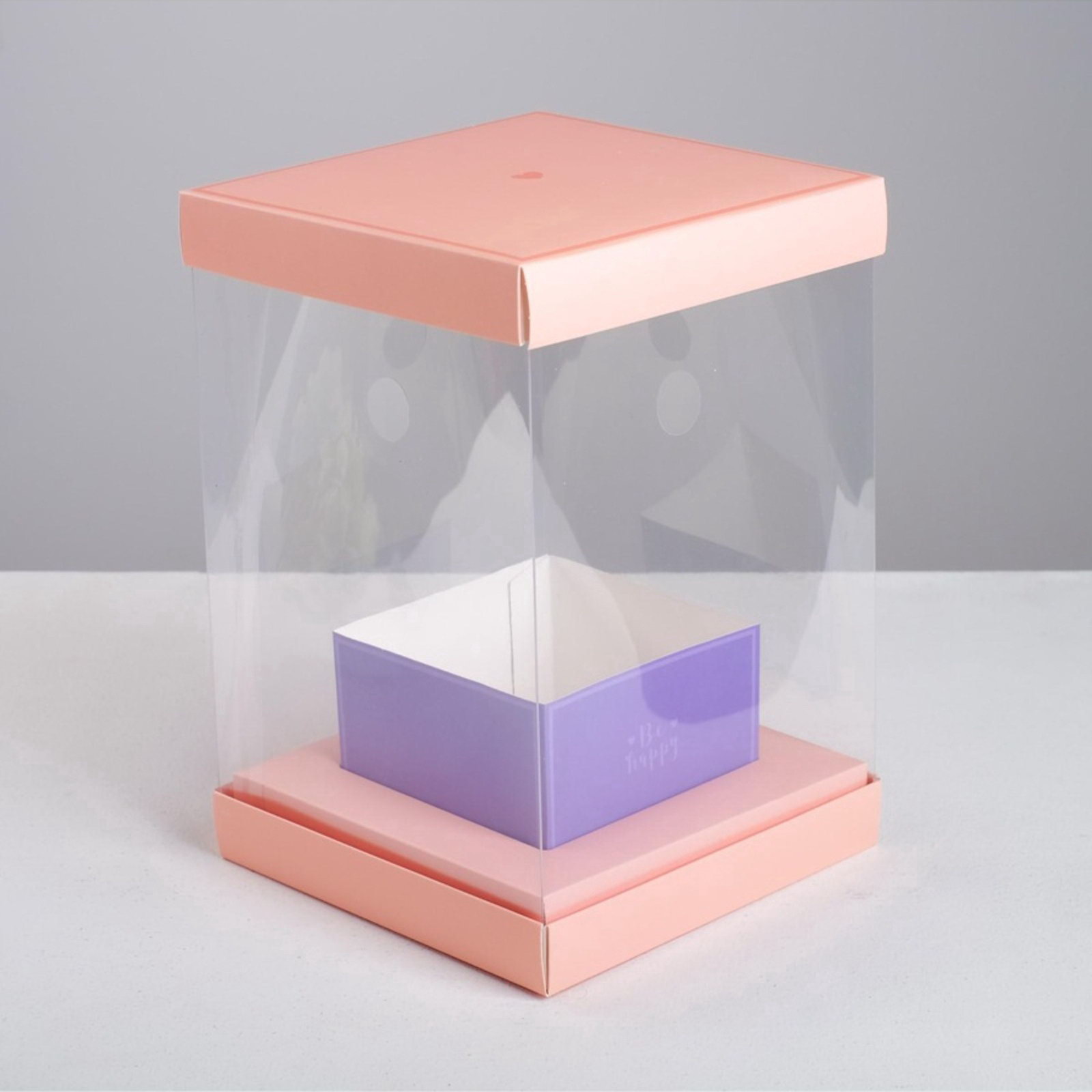 Коробка подарочная для цветов с вазой и PVC окнами складная, упаковка, "С Любовью", 16 x 23 x 16 см, 16x16x23 см., Дарите Счастье, Китай