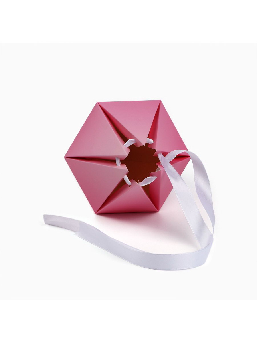 Переноска - шестиугольник для цветов "С любовью!", розовая, 15 x 35 x 15 см, Дарите Счастье, Китай