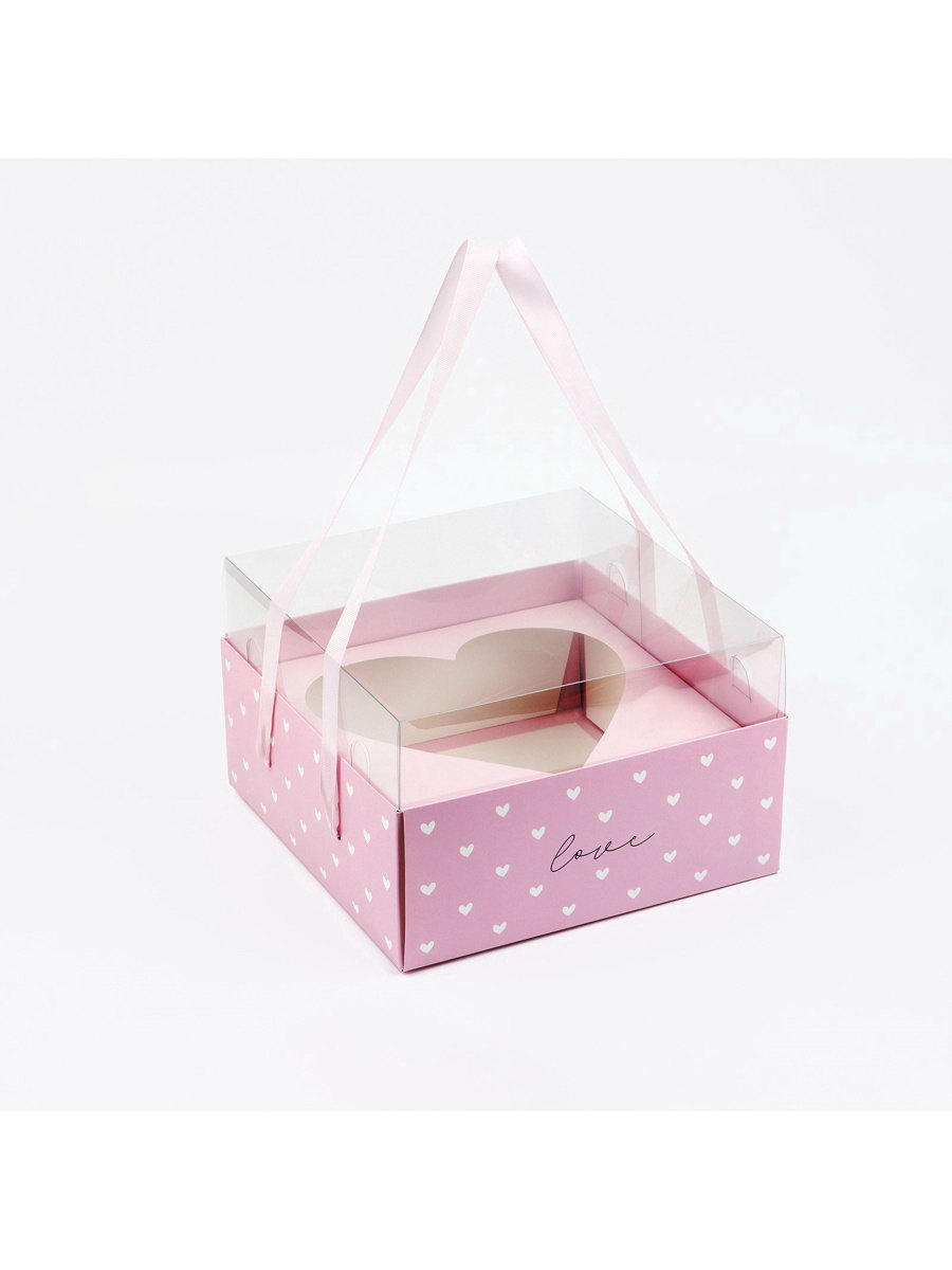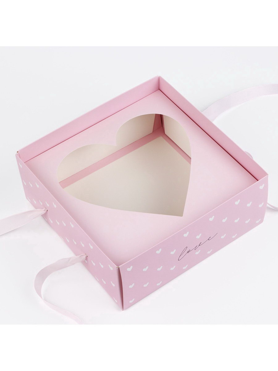 Коробка для цветов с фигурным вкладышем и PVC крышкой "Love", 23.5x23.5x15 см, Дарите Счастье, Китай