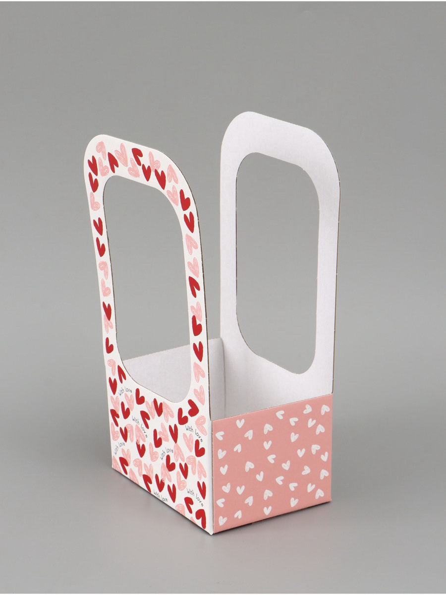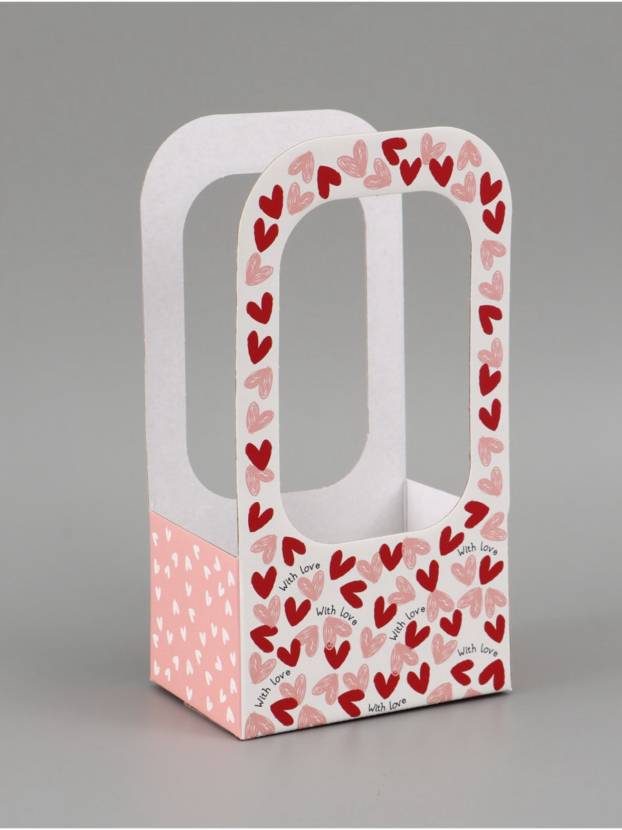 Коробка - переноска для цветов "С любовью", 17x12x32 см, Дарите Счастье, Россия