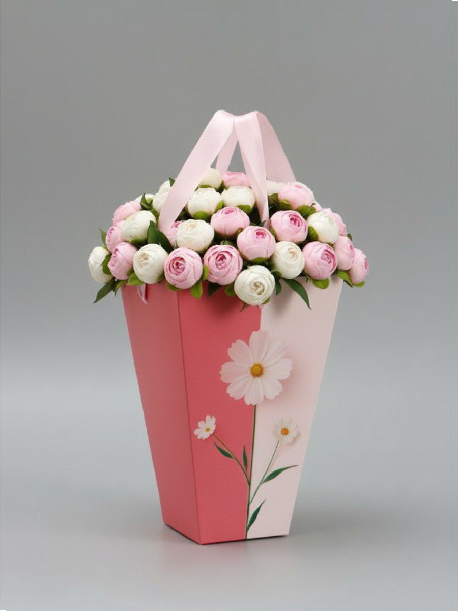 Переноска для цветов на лентах "Подарок", 17x25x9 см, Дарите Счастье, Россия