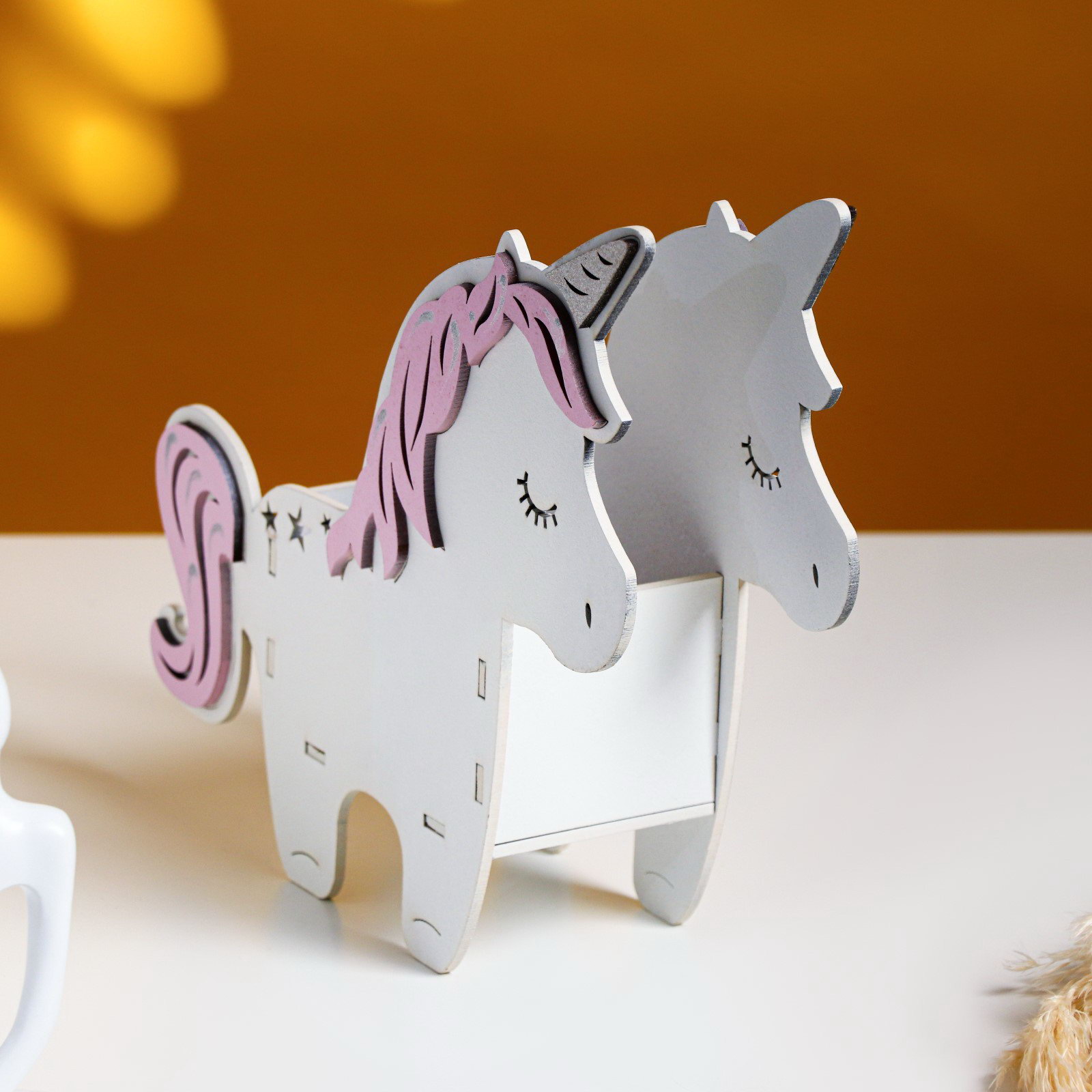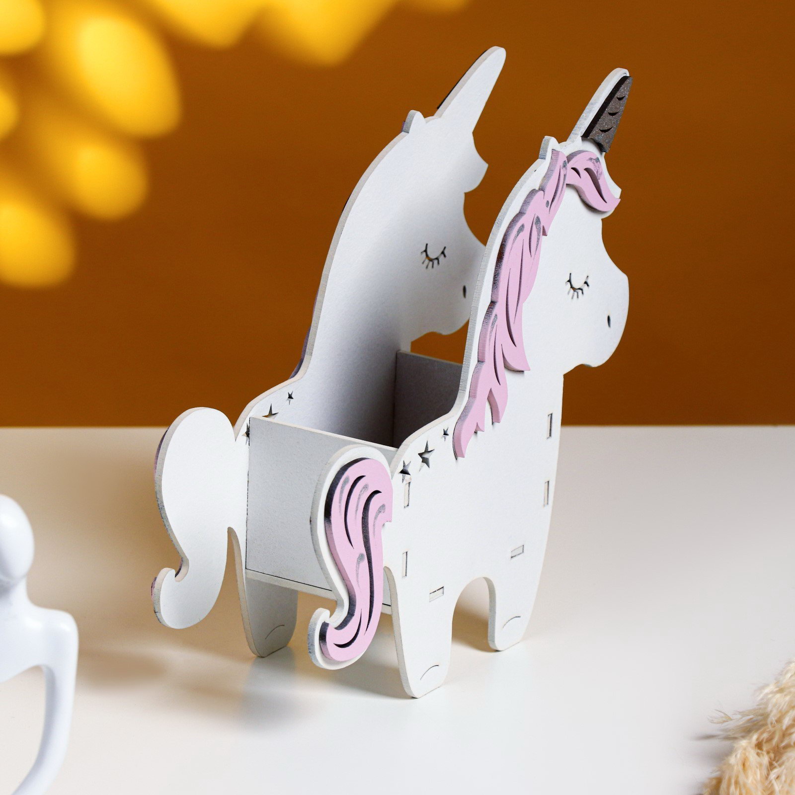Кашпо деревянное 21.5x7x21 см уникальное "Единорог", белый розовый, Дарим Красиво, Россия