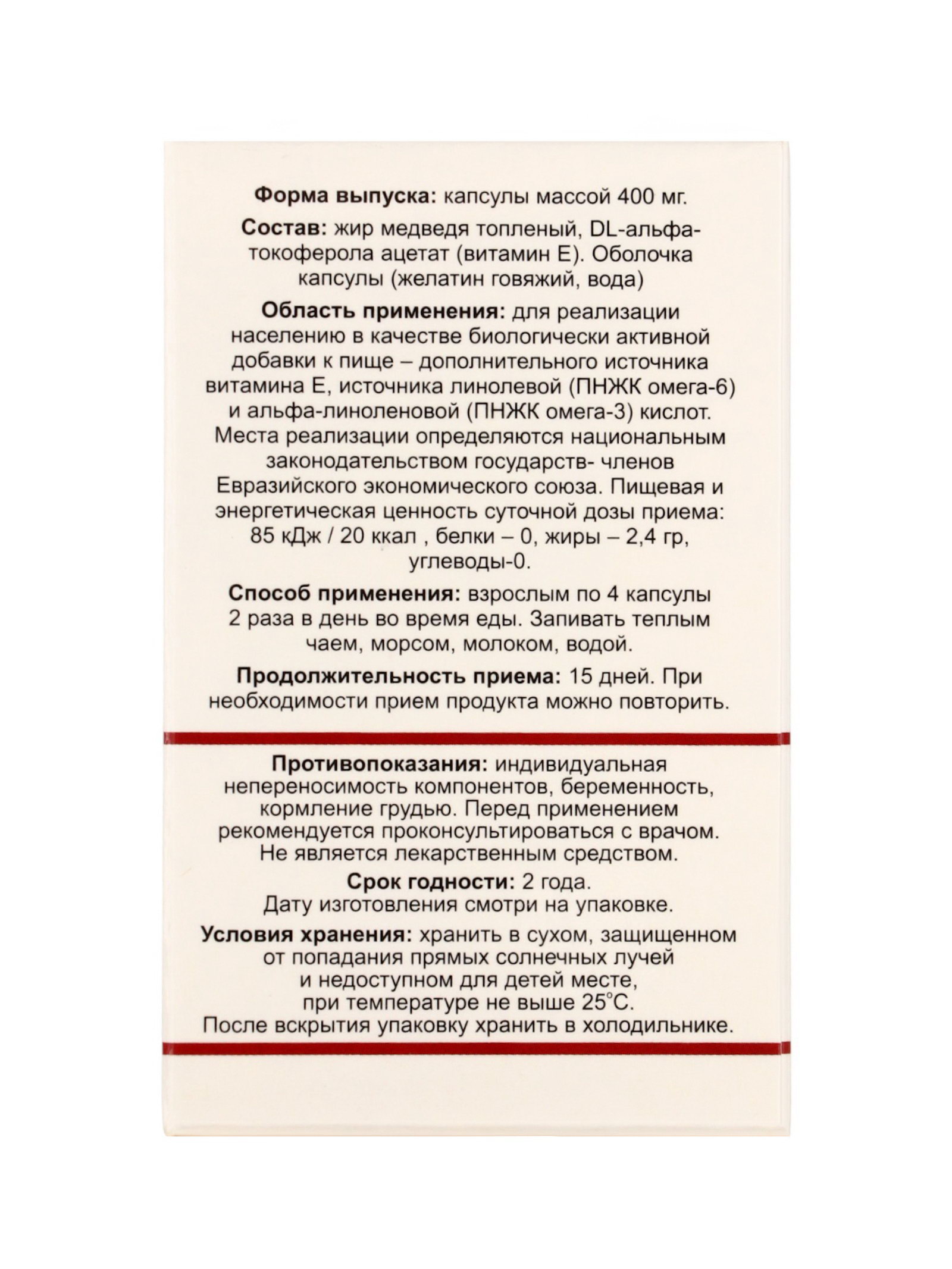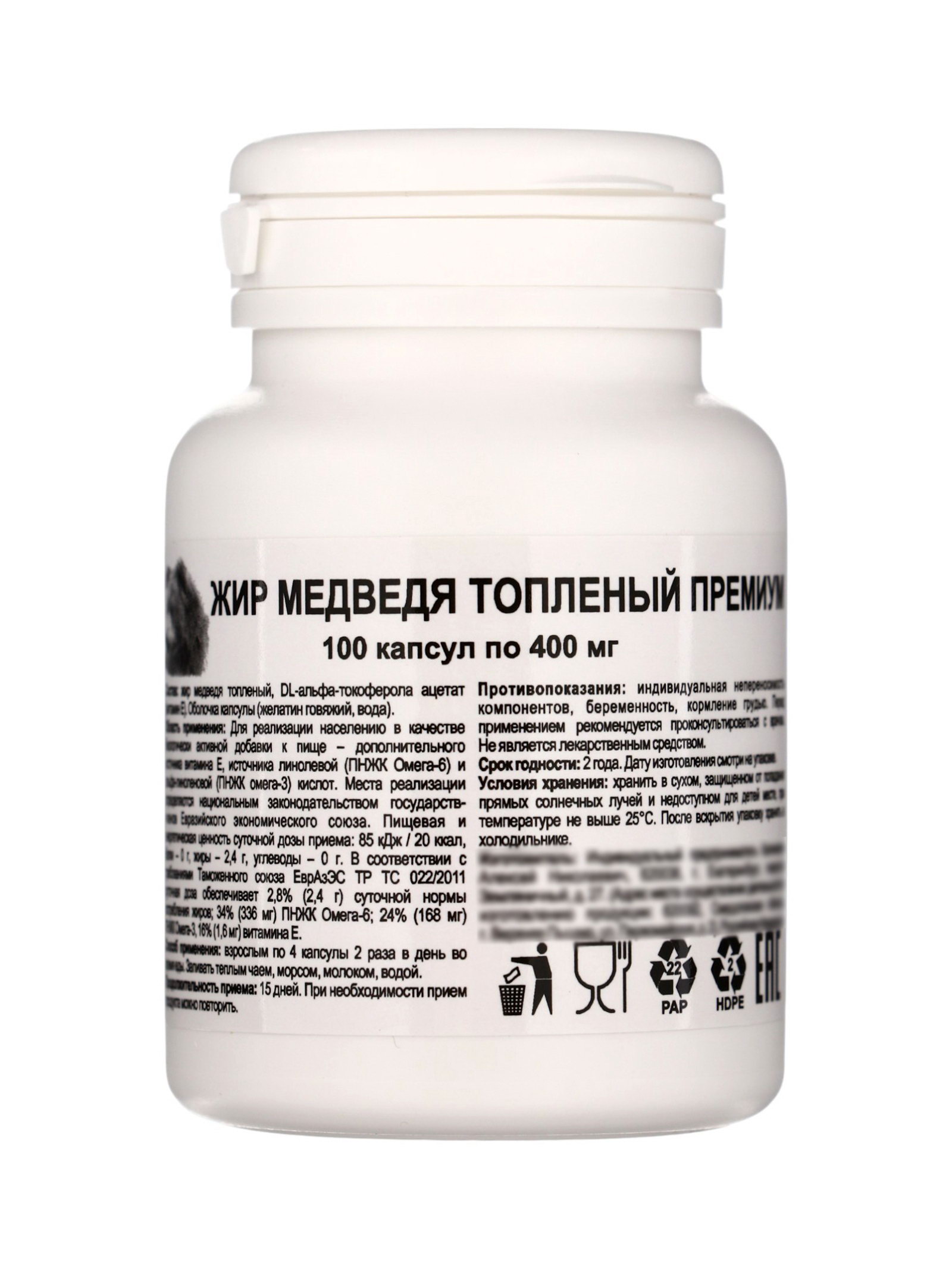 Медвежий жир 0.4 г, 100 капсул, Пресняков, Россия