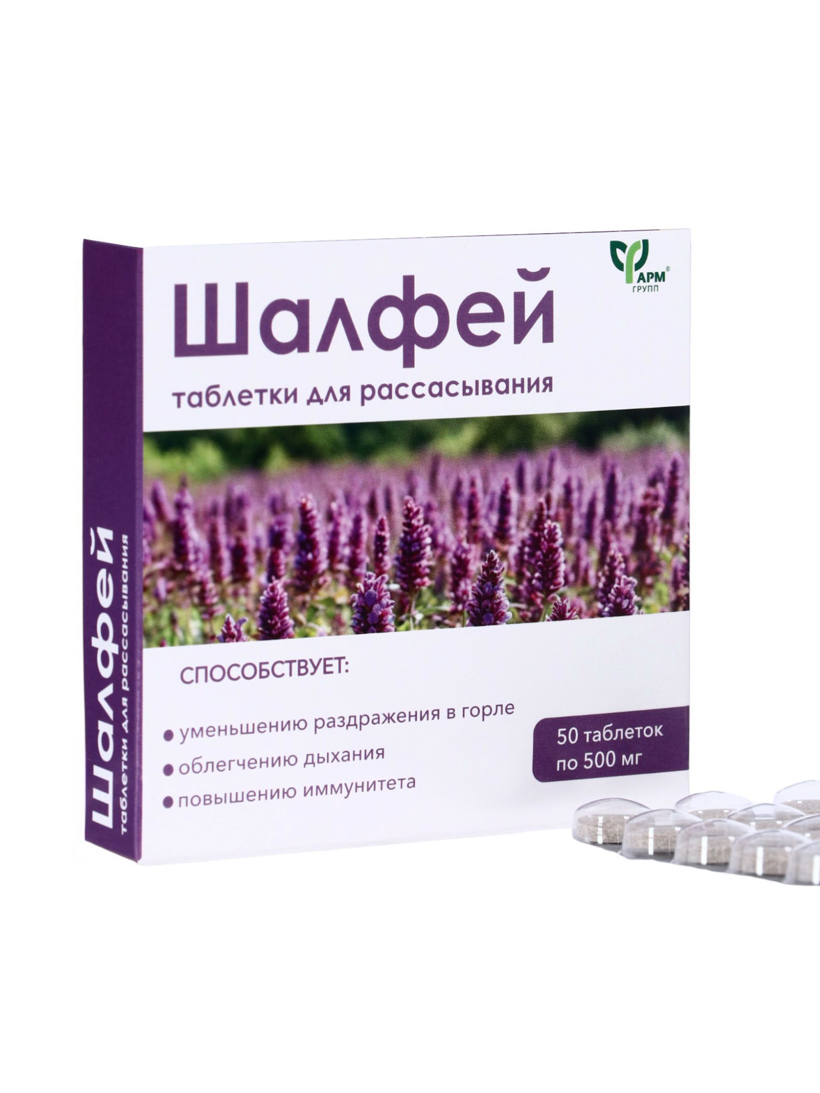 Шалфей, таблетки для рассасывания, 50 таблеток по 0.5 г, Фармгрупп, Россия