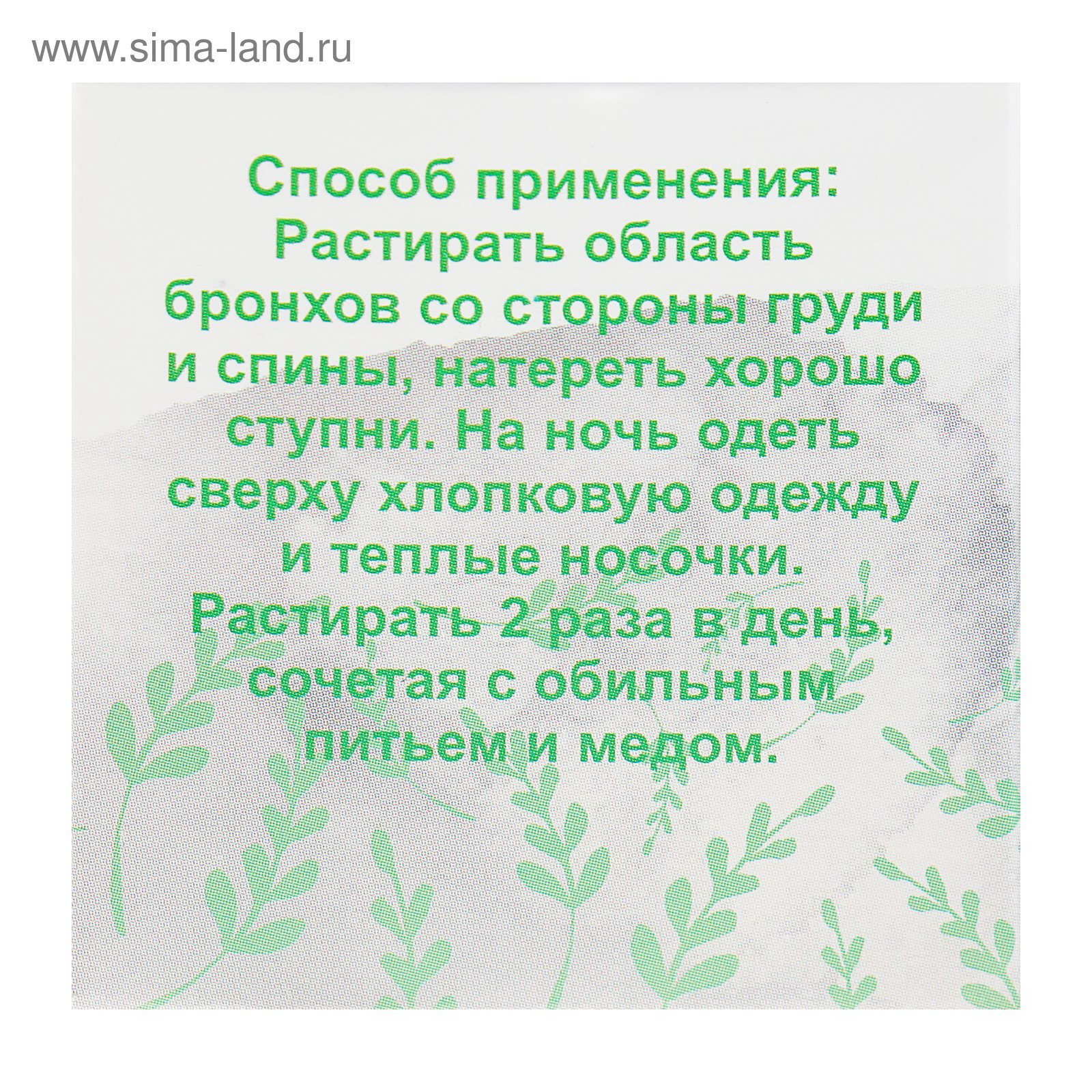 Размер упаковки: 4.5 x 5 x 4.5 см. Назначение: От простуды и гриппа Возраст: От 2 лет Возраст: От 2 лет tnved: 3304990000 Вид: Растирка Вес, г/Объём, мл: 30 Лечение при помощи растительных и лекарственных разогревающих средств эффективный метод оздоровления человека. Барсучий жир обладает: противомикробным, противовоспалительным, отхаркивающим, бактерицидным, антиоксидантным, иммуномодулирующим, антивирусным, общеукрепляющим, ранозаживляющим, регенерирующим, действиями. Мазь ТМ "Бизорюк" эффективно устранит простуду на ранних стадиях развития. Используйте это средство при простуде у детей, кашле, сниженном иммунитете, заболеваниях органов дыхания, при бронхитах, трахеитах, заболеваниях ЛОР-органов. Состав: барсучий жир, мёд натуральный кавказский, воск пчелиный, масляные экстракты душицы, чабреца, лимонника, ежевики, мяты перечной, мяты луговой, кипрея. Рекомендации к применению: применять немедленно при обнаружении признаков заболевания теплым (горячим) растиранием спины и груди в области бронхов 2 раза в сутки, растирать ступни и укутывать теплым компрессом. При отсутствии температуры сочетается с применением разогревающих компрессов и горчичников. Применять до выздоровления. Можно использовать с 2 лет при отсутствии аллергии на компоненты. | ||