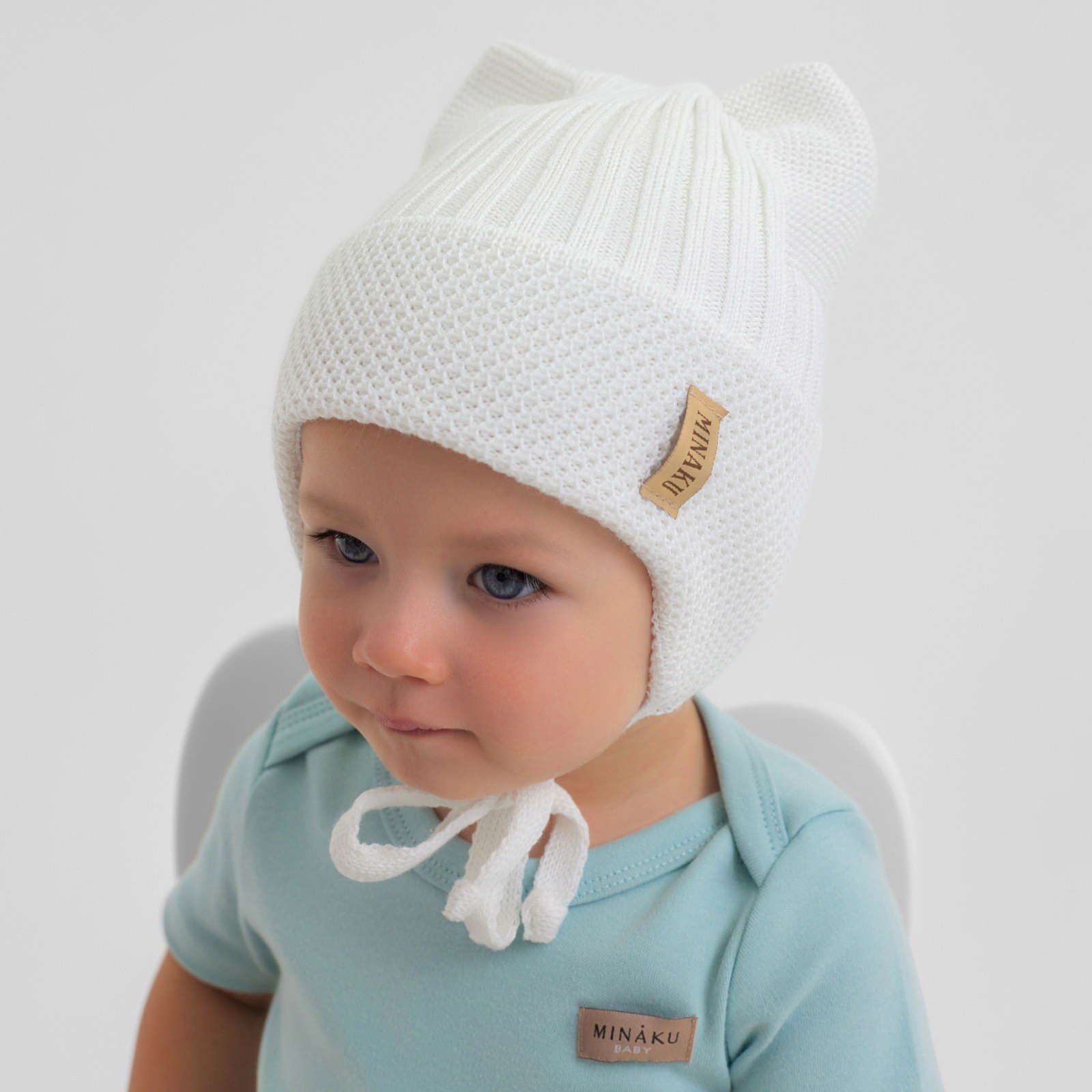 Шапка детская с ушками размер 46-48, молочная, MINAKU, Россия
