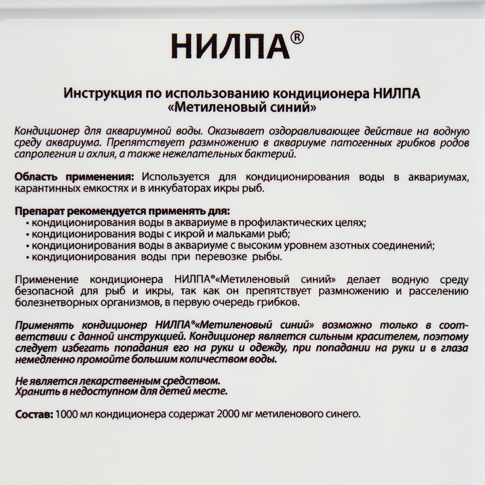 Кондиционер для аквариумной воды "Метиленовый синий" против грибков, бактерий, ихтиофтириоза, 1 л, 1000 мл., НИЛПА, Россия