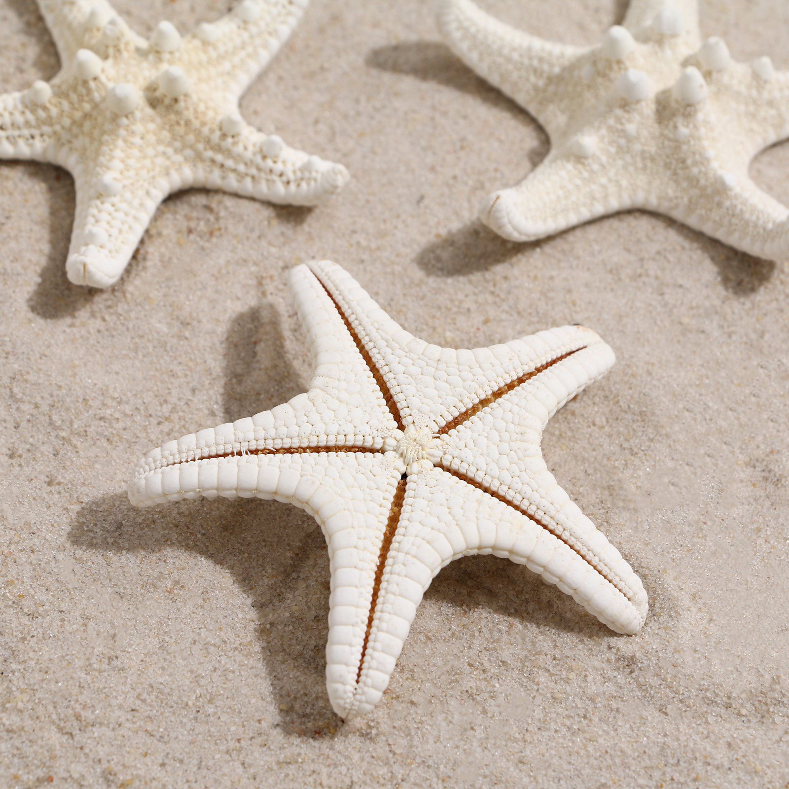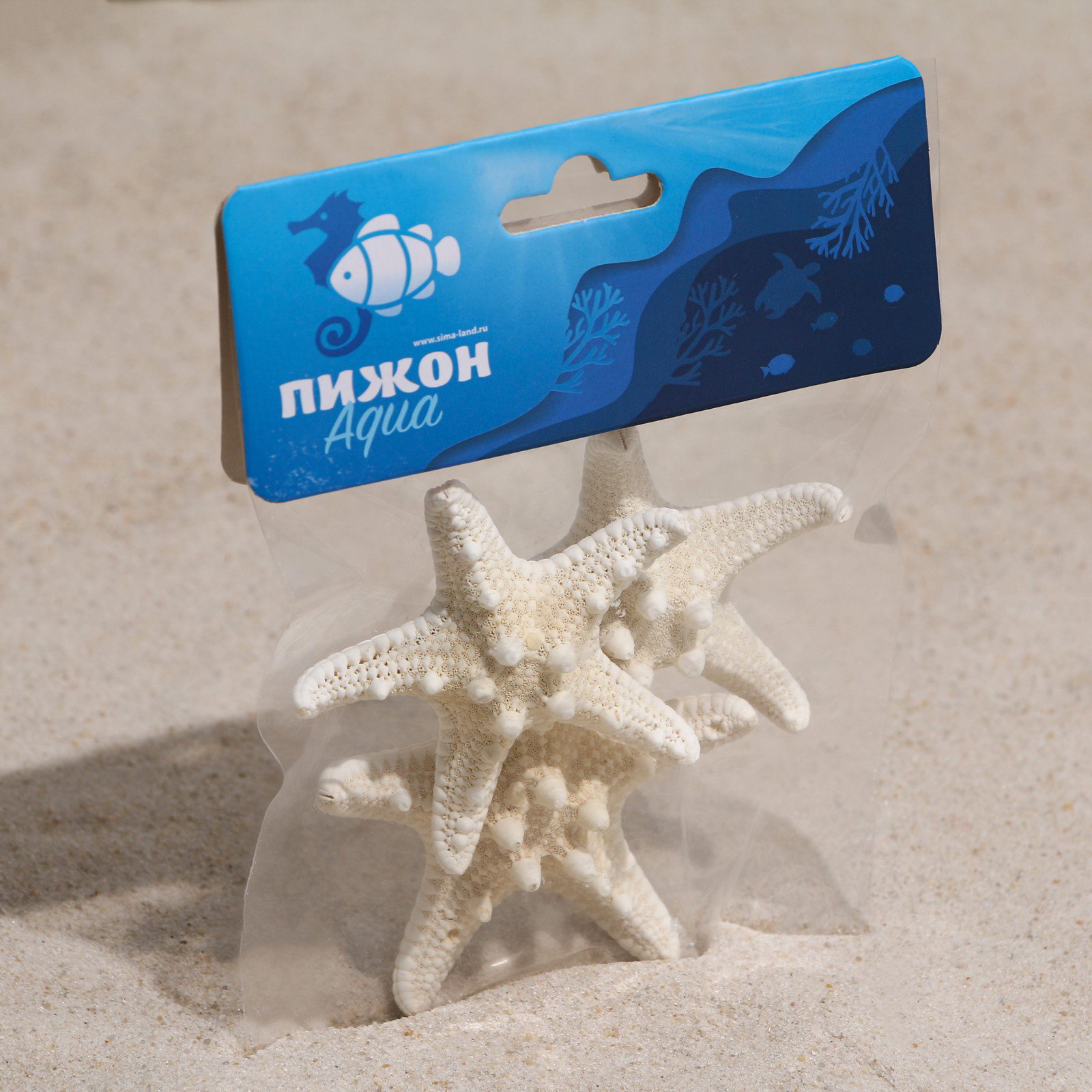 Набор из 3 морских звезд, размер каждой 5-10 см, белые, Пижон Аква, Китай