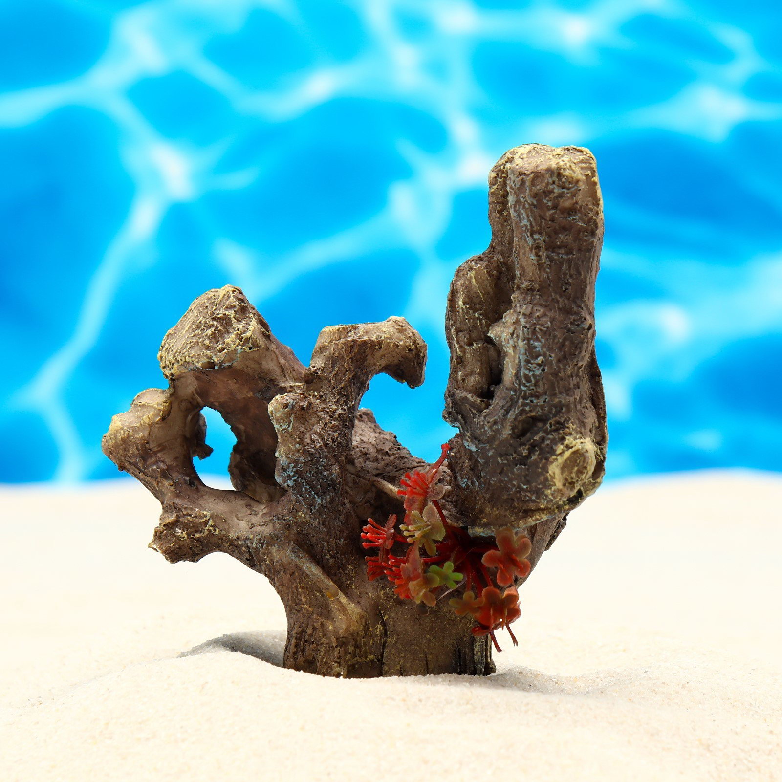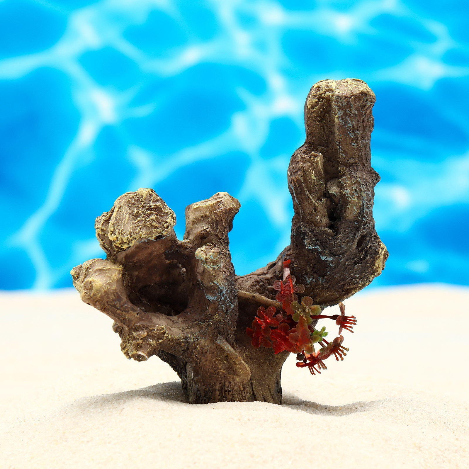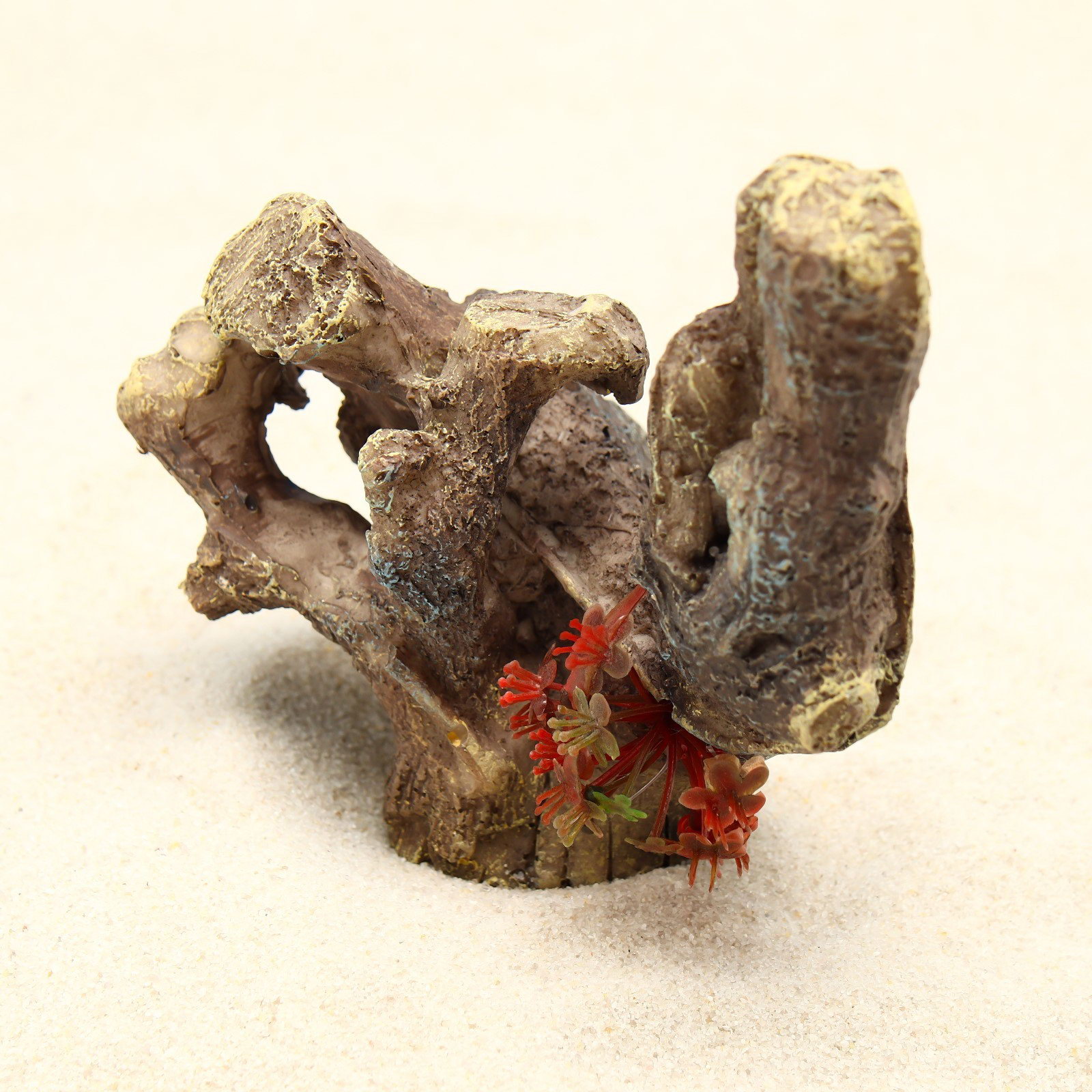 Декор для аквариума "Пень с травой", 11x7.5x8 см, Пижон Аква, Китай