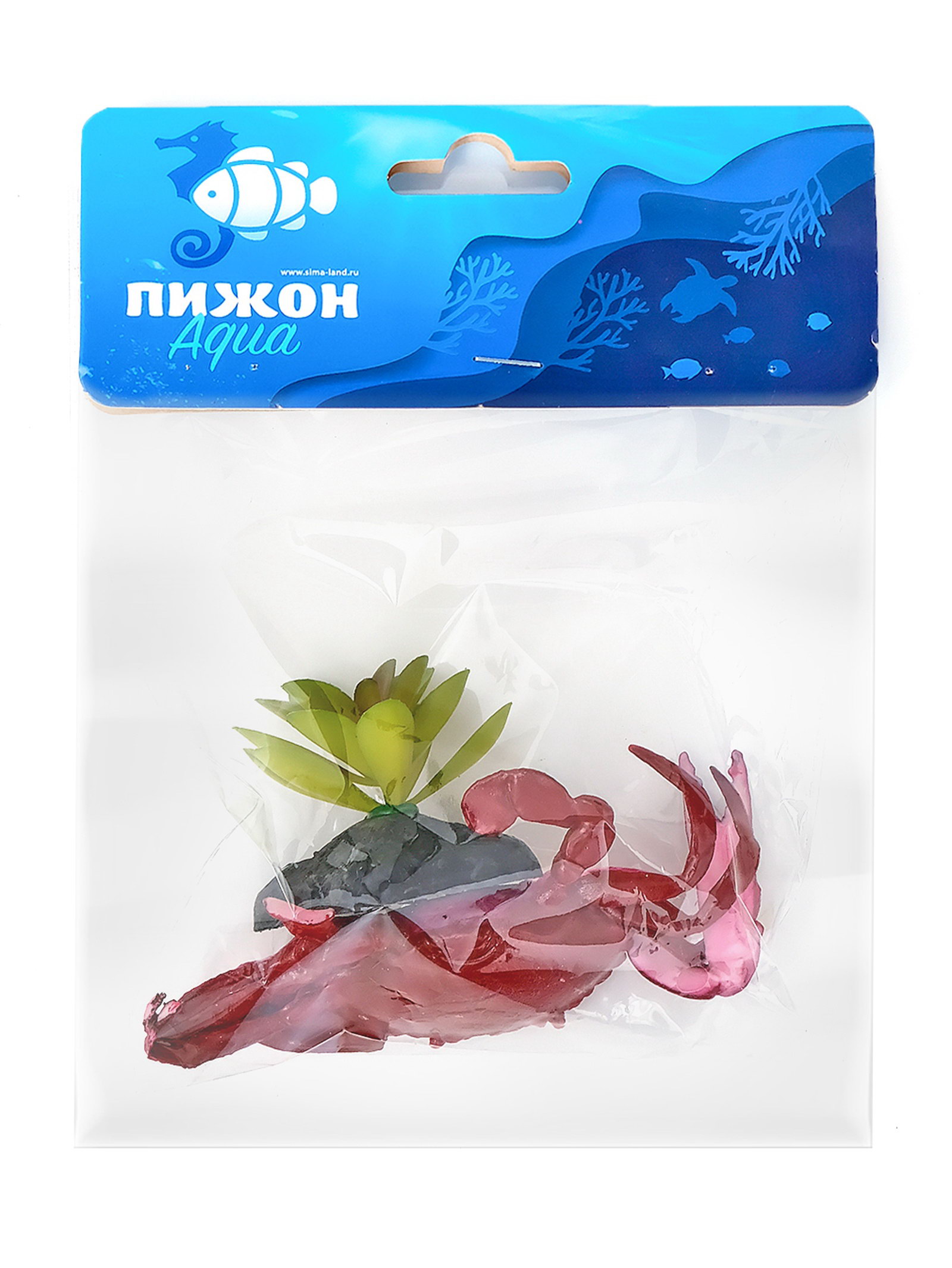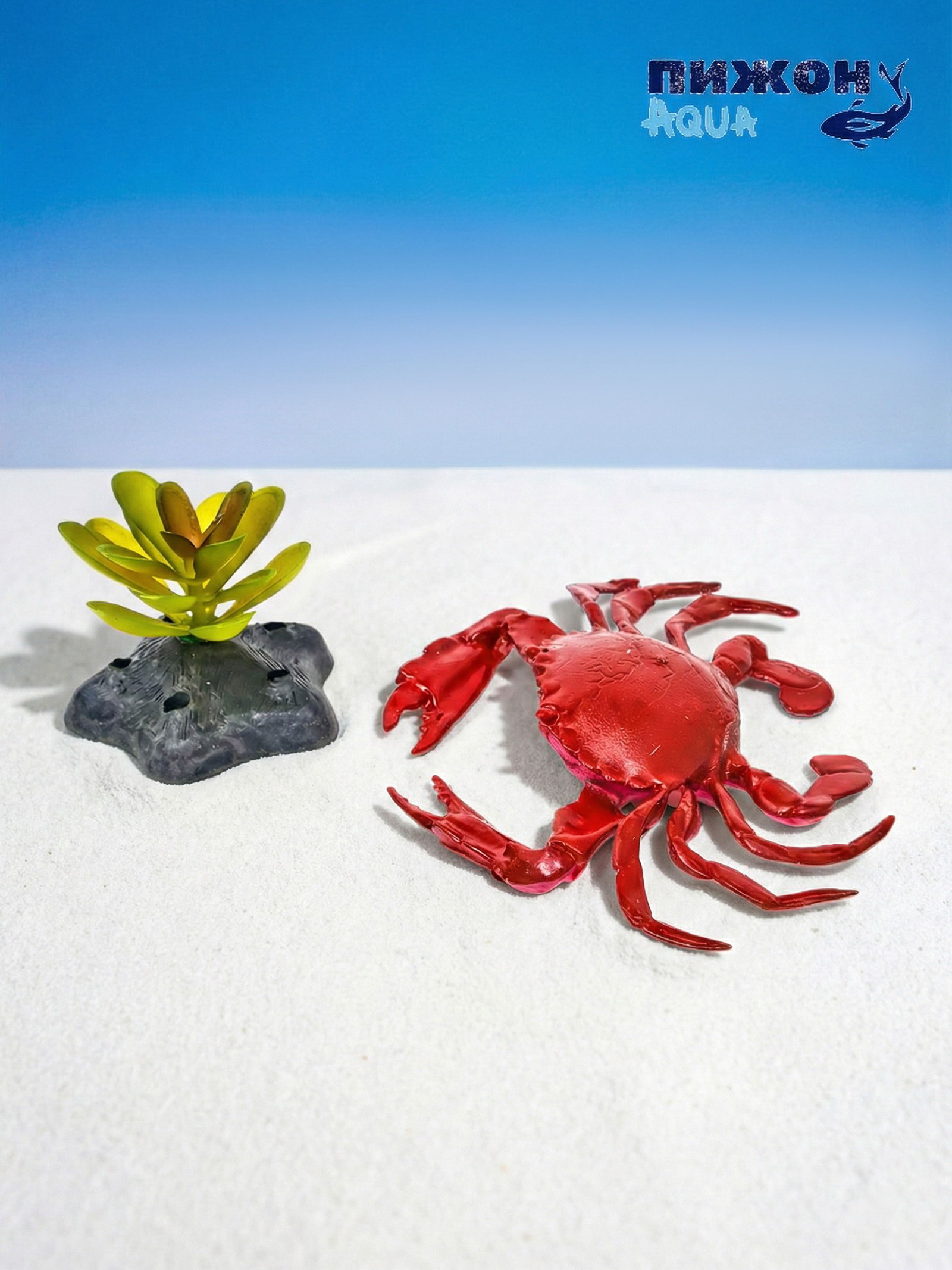Набор декора для аквариума "Краб и трава", Пижон Аква, Китай