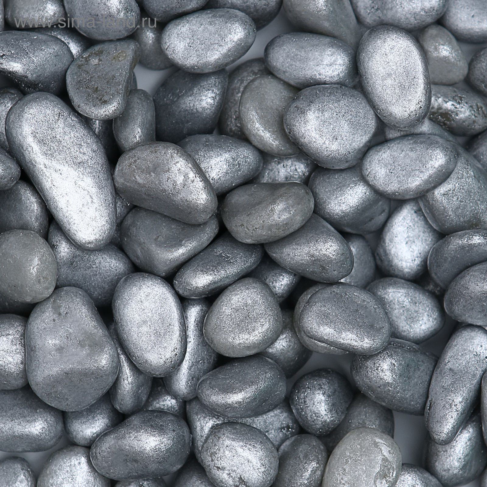 Грунт для аквариума "Галька серебристый металлик" галька декоративная 350 г фр.5-10 мм, DECOR DE, Россия