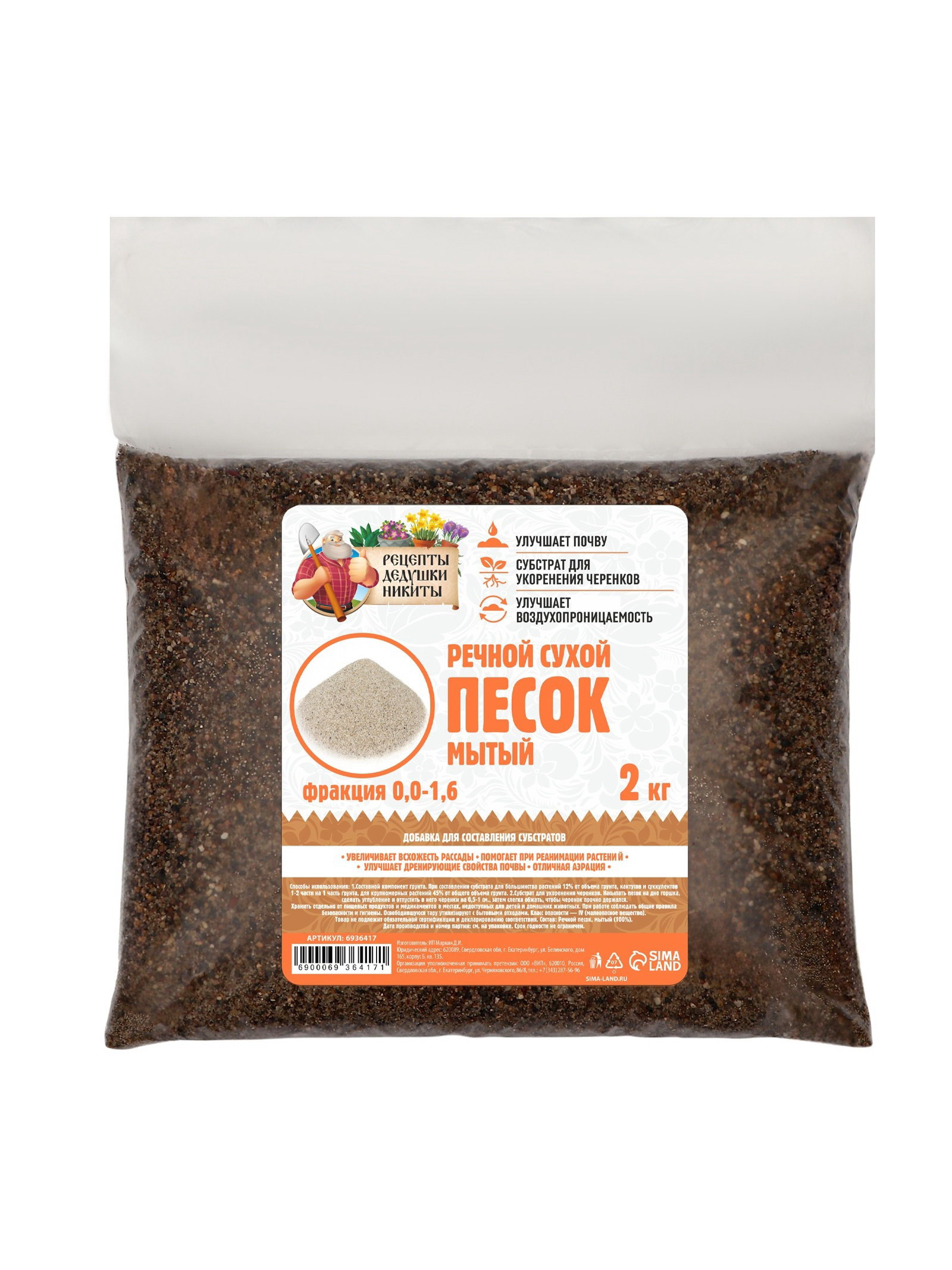 Речной песок сухой, фр 0.0-1.6, 2 кг, Рецепты дедушки Никиты, Россия