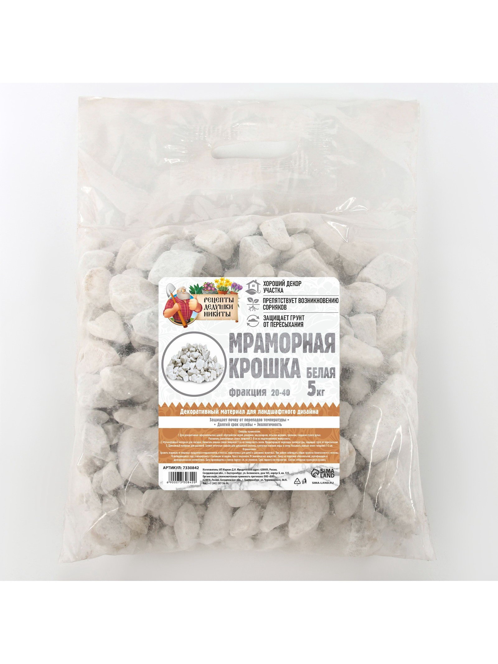Мраморная крошка "Рецепты Дедушки Никиты", отборная, белая, фр 20-40 мм, 5 кг, Рецепты дедушки Никиты, Россия
