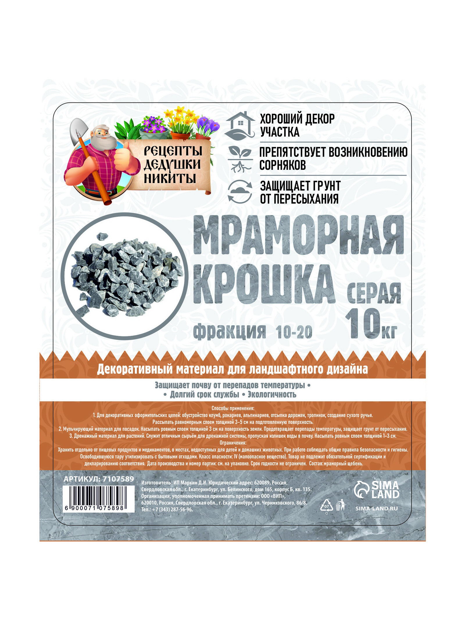 Мраморная крошка "Рецепты Дедушки Никиты", серая, фр 10-20 мм, 10 кг, Рецепты дедушки Никиты, Россия