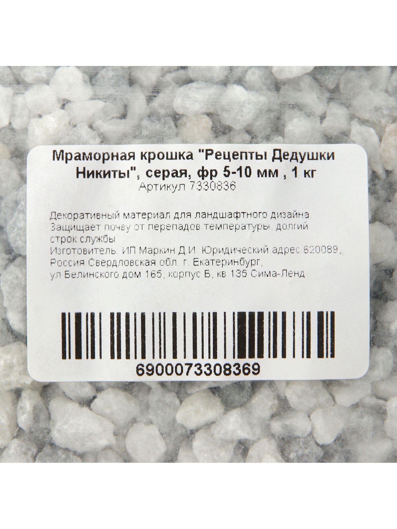 Мраморная крошка "Рецепты Дедушки Никиты", серая, фр 5-10 мм, 1 кг, Рецепты дедушки Никиты, Россия