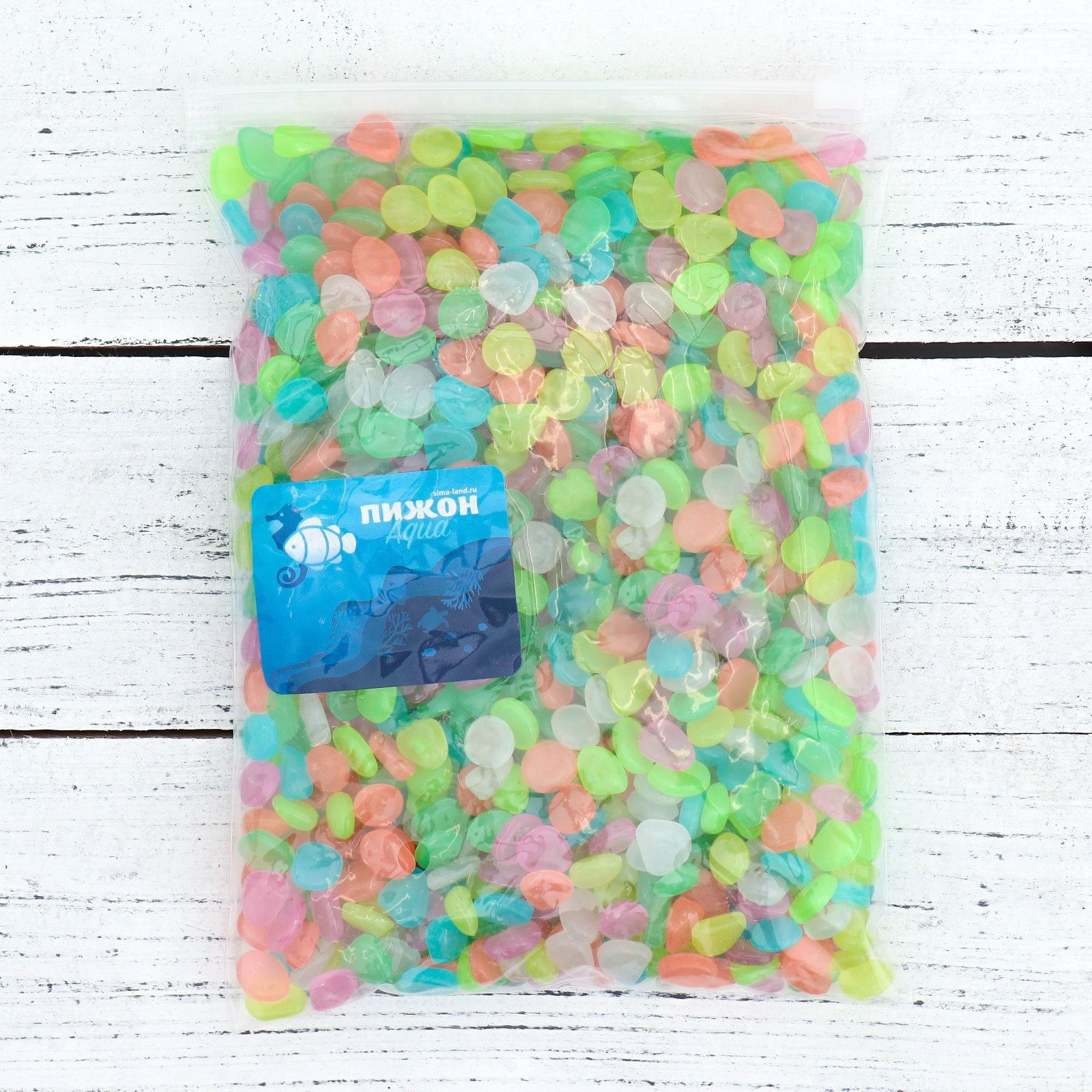Декоративные камни для аквариума, светящиеся, 8-11 мм, 500 г, микс, Пижон Аква, Китай