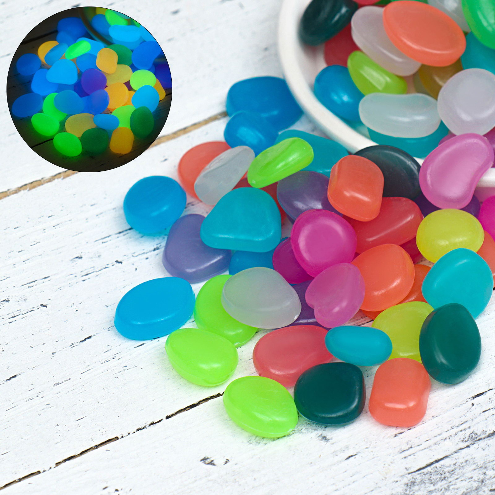Декоративные камни для аквариума, светящиеся, 20 мм, 1 кг, микс, Пижон Аква, Китай