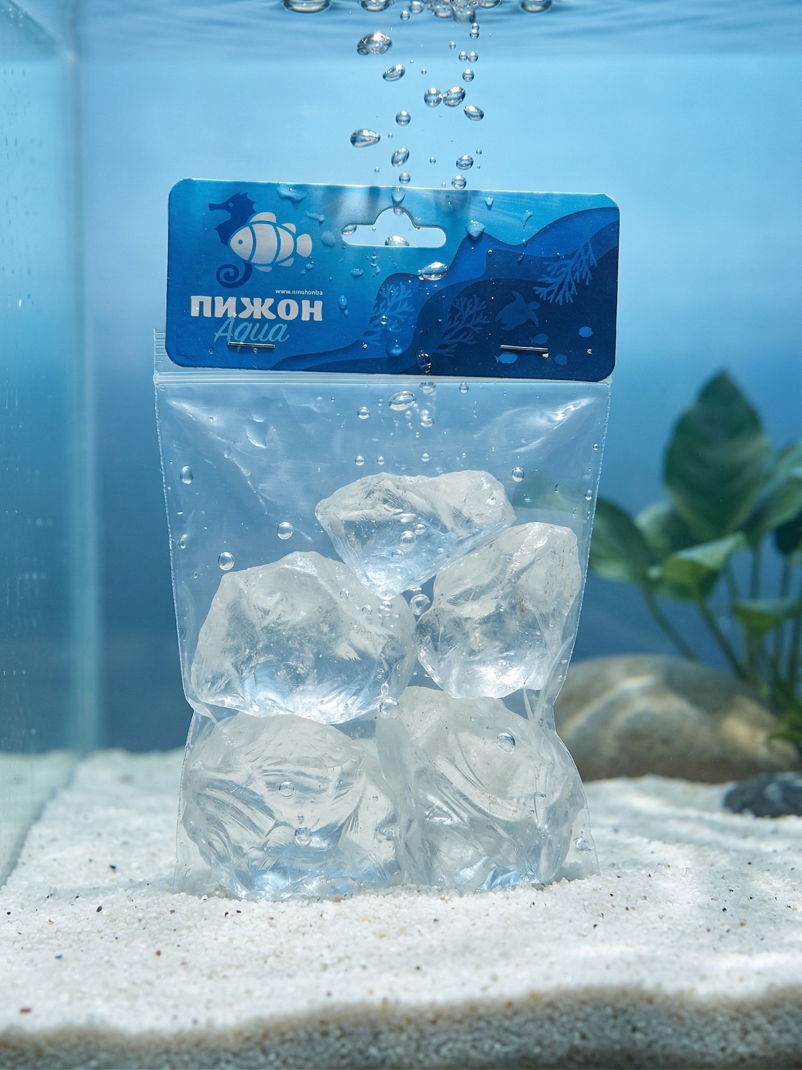 Декоративные камни для аквариума, 3-5 см, 500 г, необработанные, стекло, прозрачные, Пижон Аква, Китай