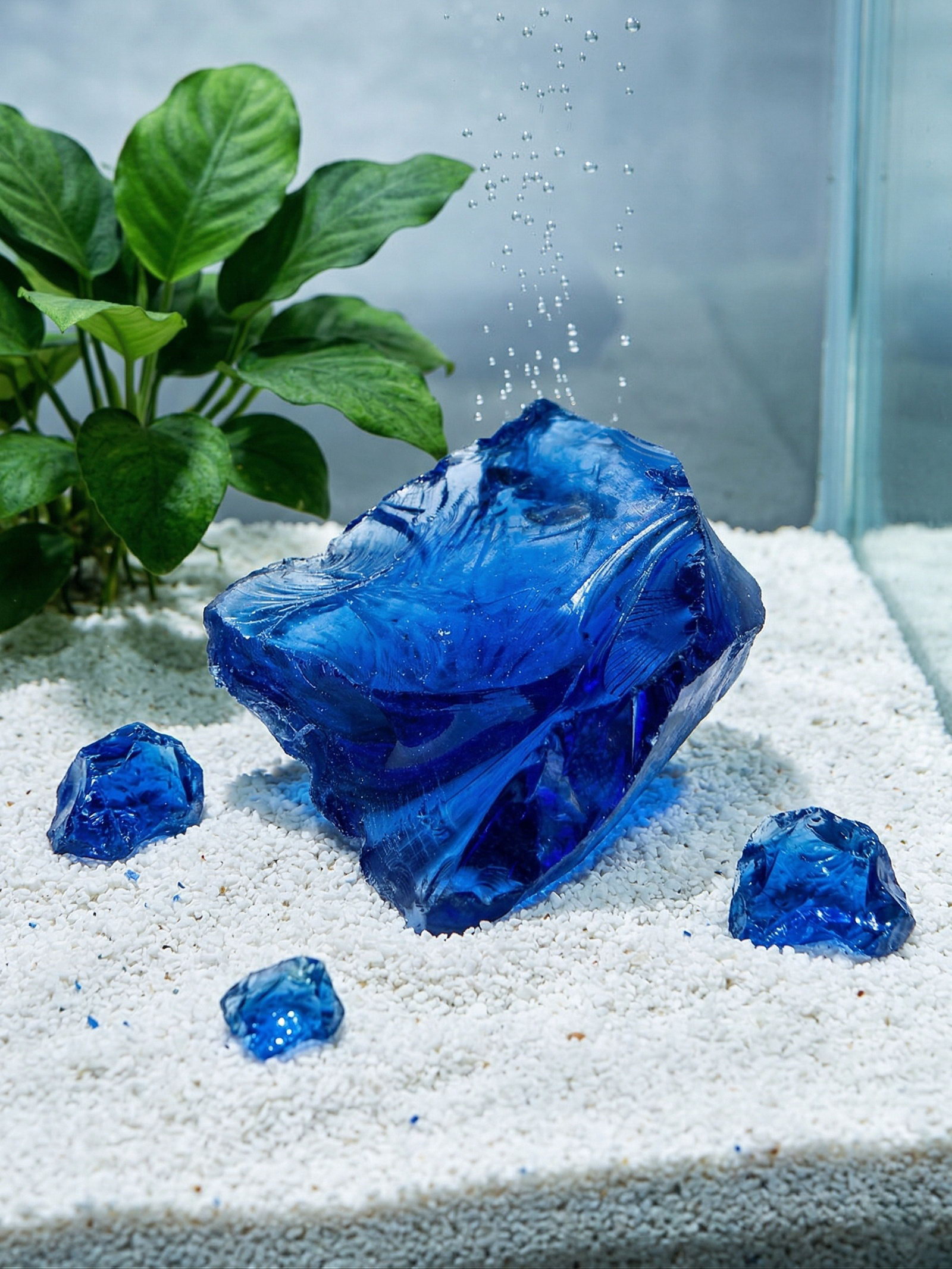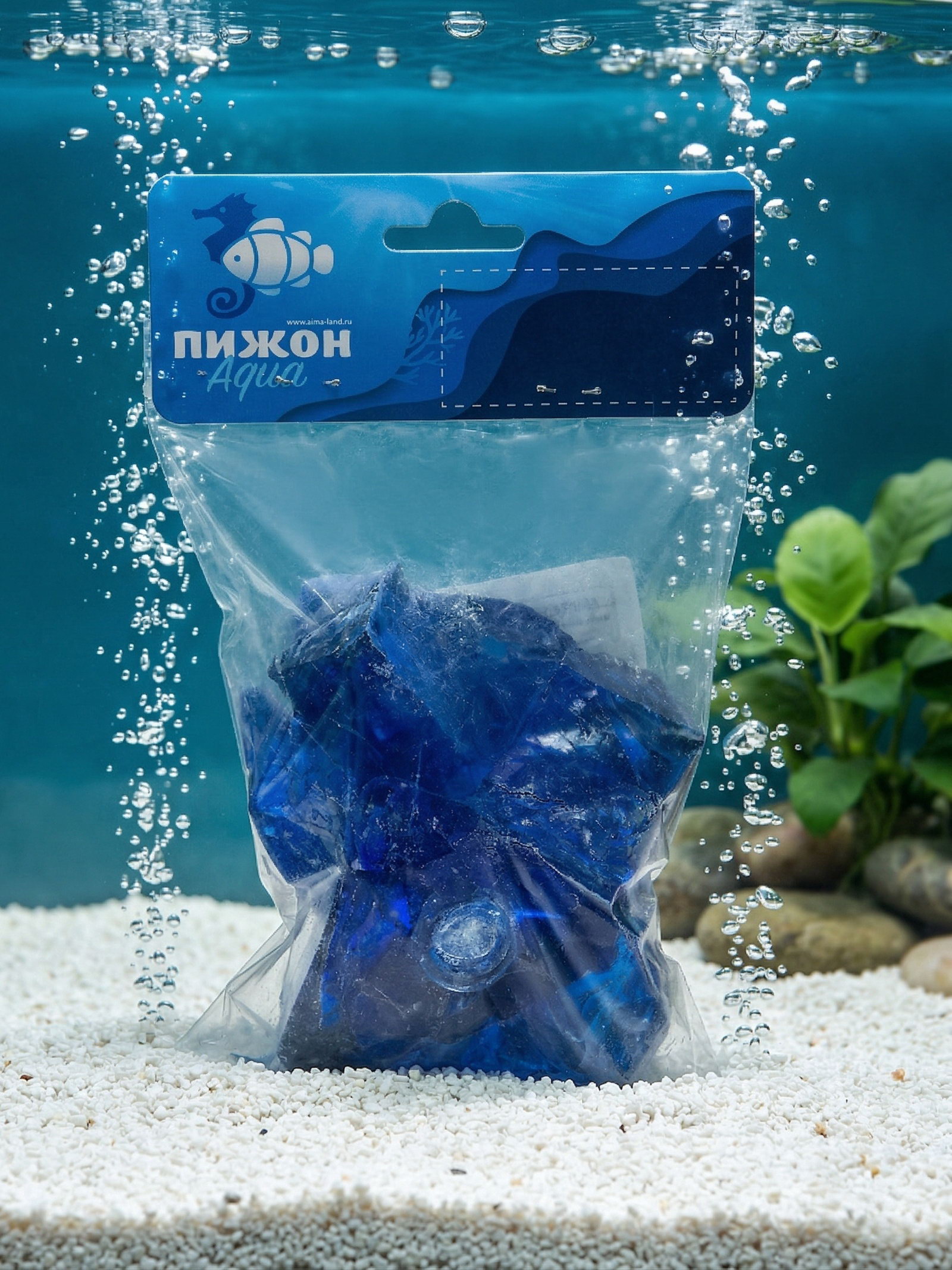 Декоративные камни для аквариума, 3-5 см, 500 г, необработанные, стекло, синие, Пижон Аква, Китай