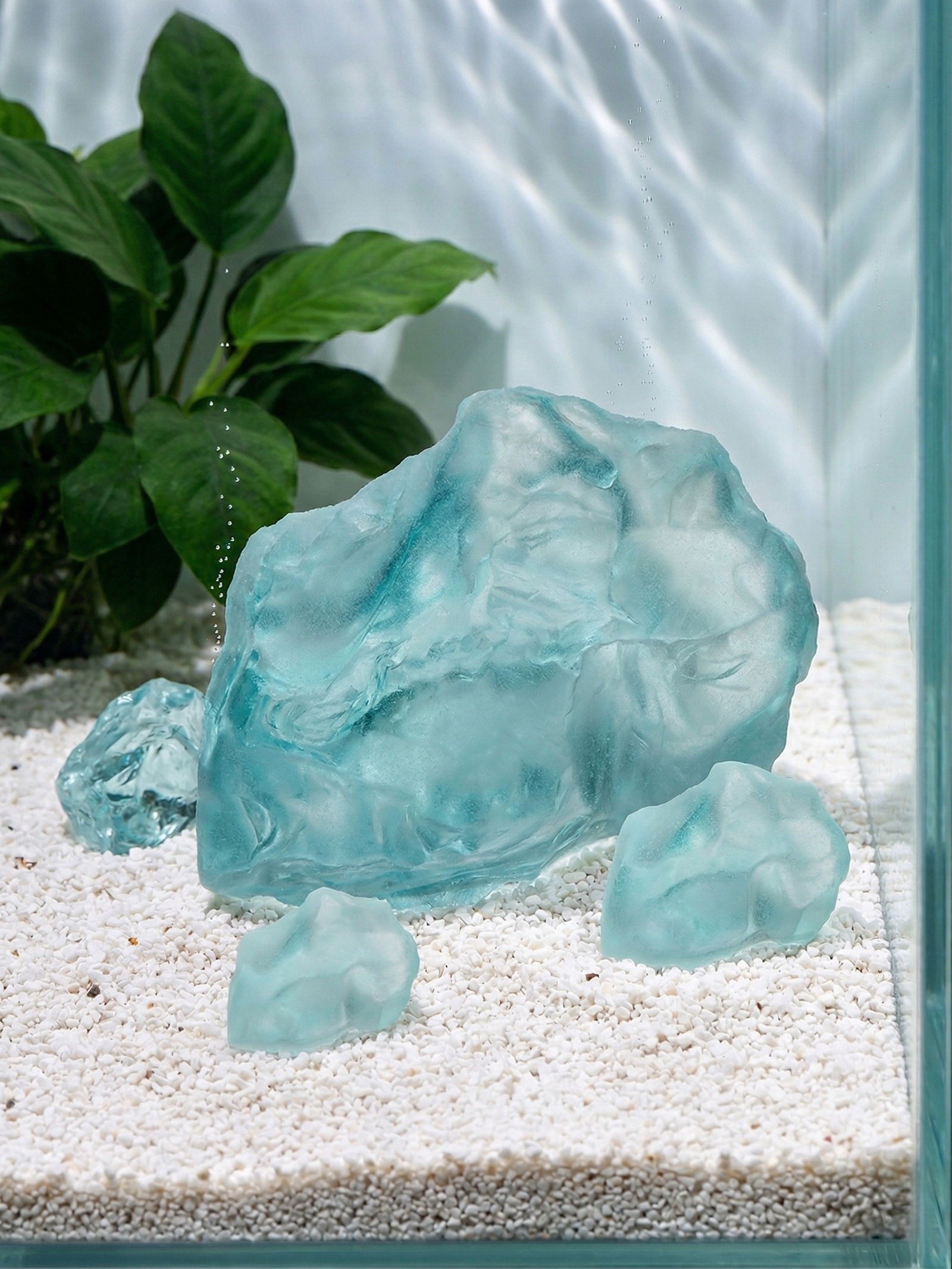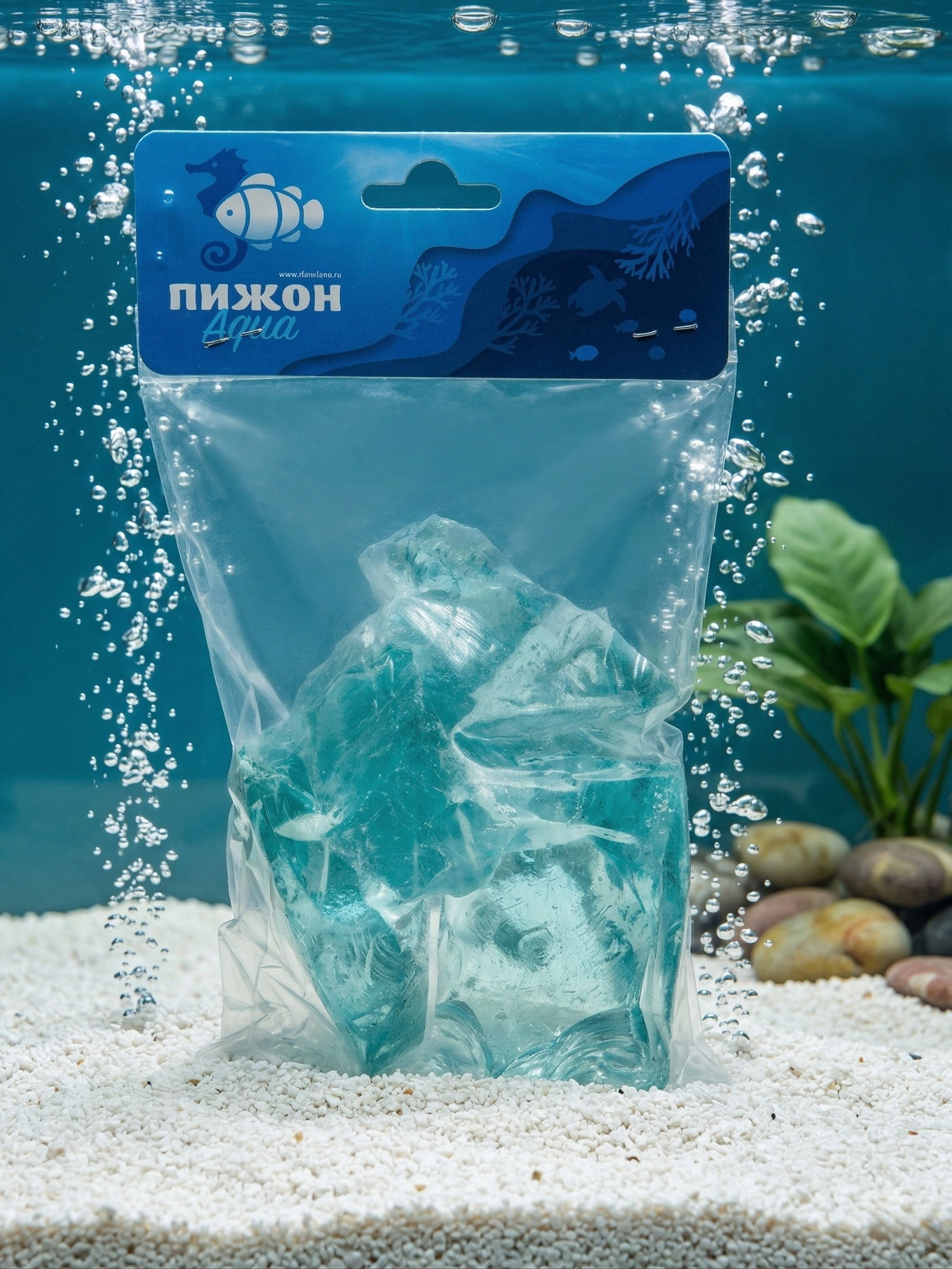 Декоративные камни для аквариума, 3-5 см, 500 г, необработанные, стекло, голубые, Пижон Аква, Китай