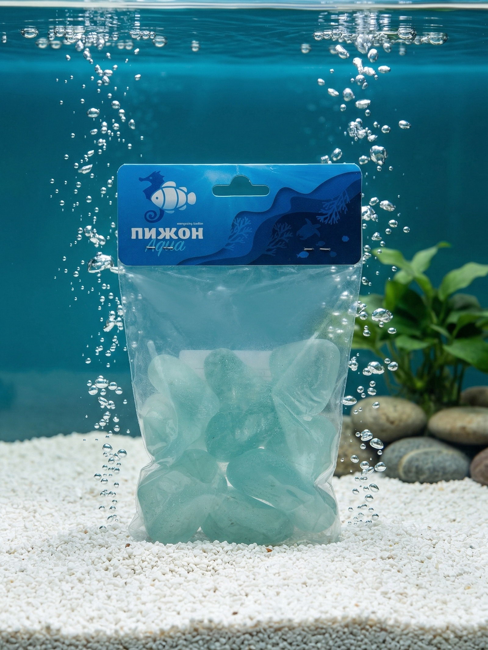 Декоративные камни для аквариума, 500 г, стекло, Пижон Аква, Китай