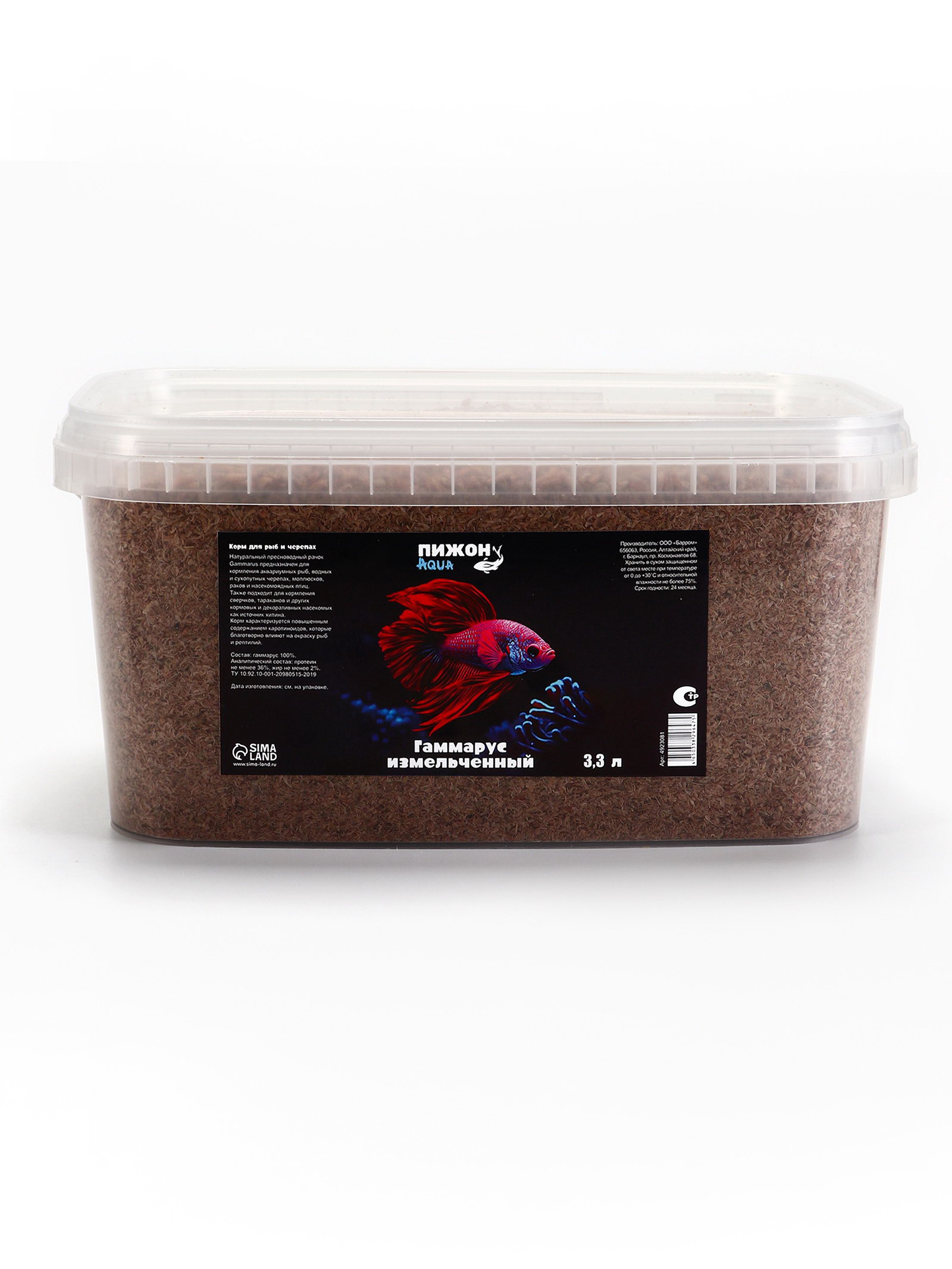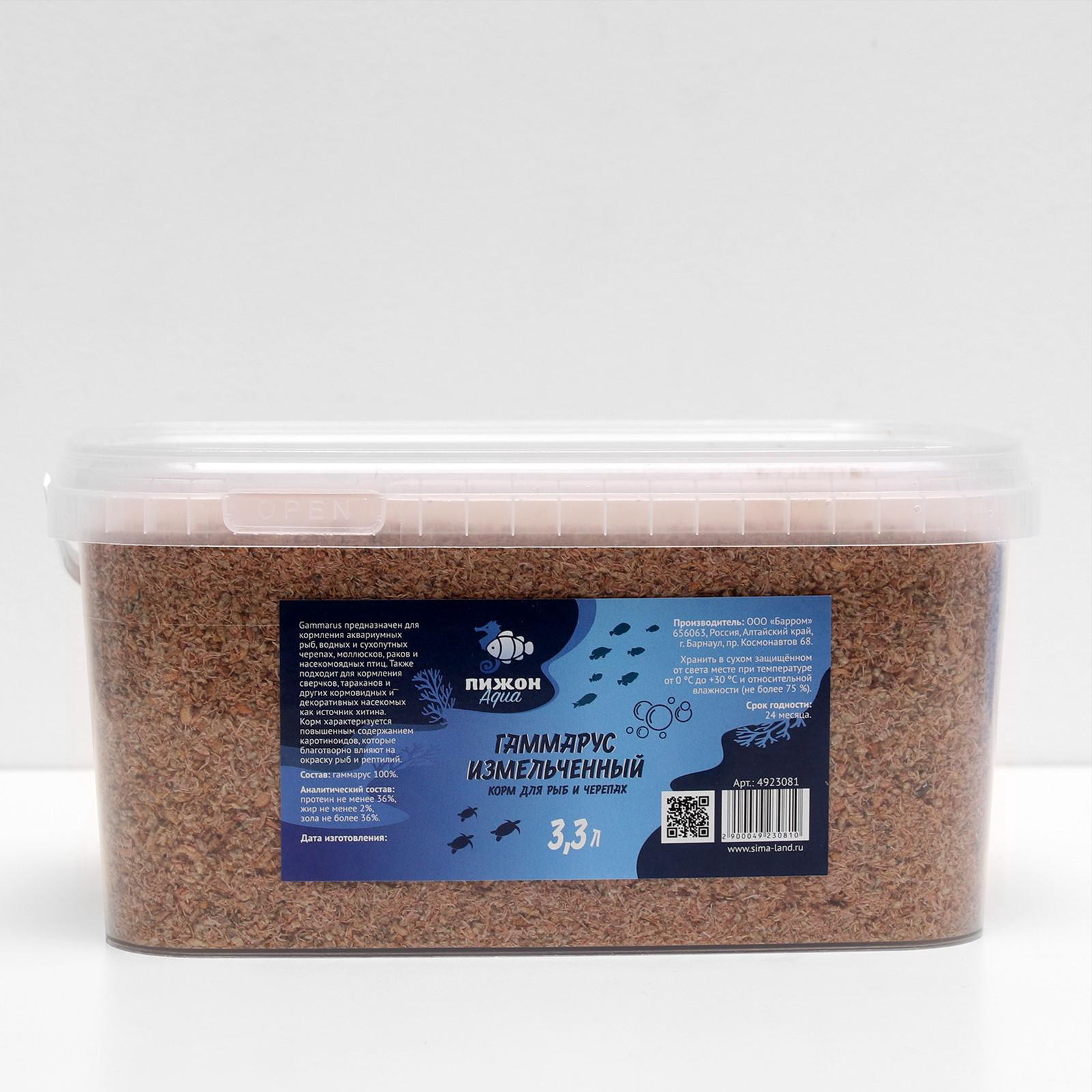 Корм для рыб и черепах "Пижон" гаммарус измельченный, 3.3 л, Пижон Аква, Россия