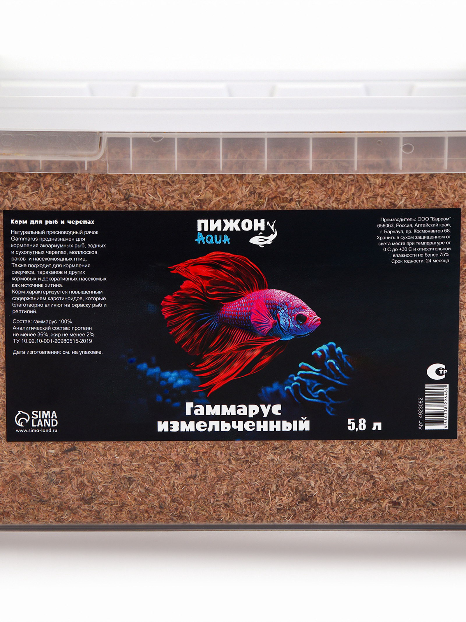 Корм для рыб и черепах "Пижон" гаммарус измельченный, 5.8 л, Пижон Аква, Россия