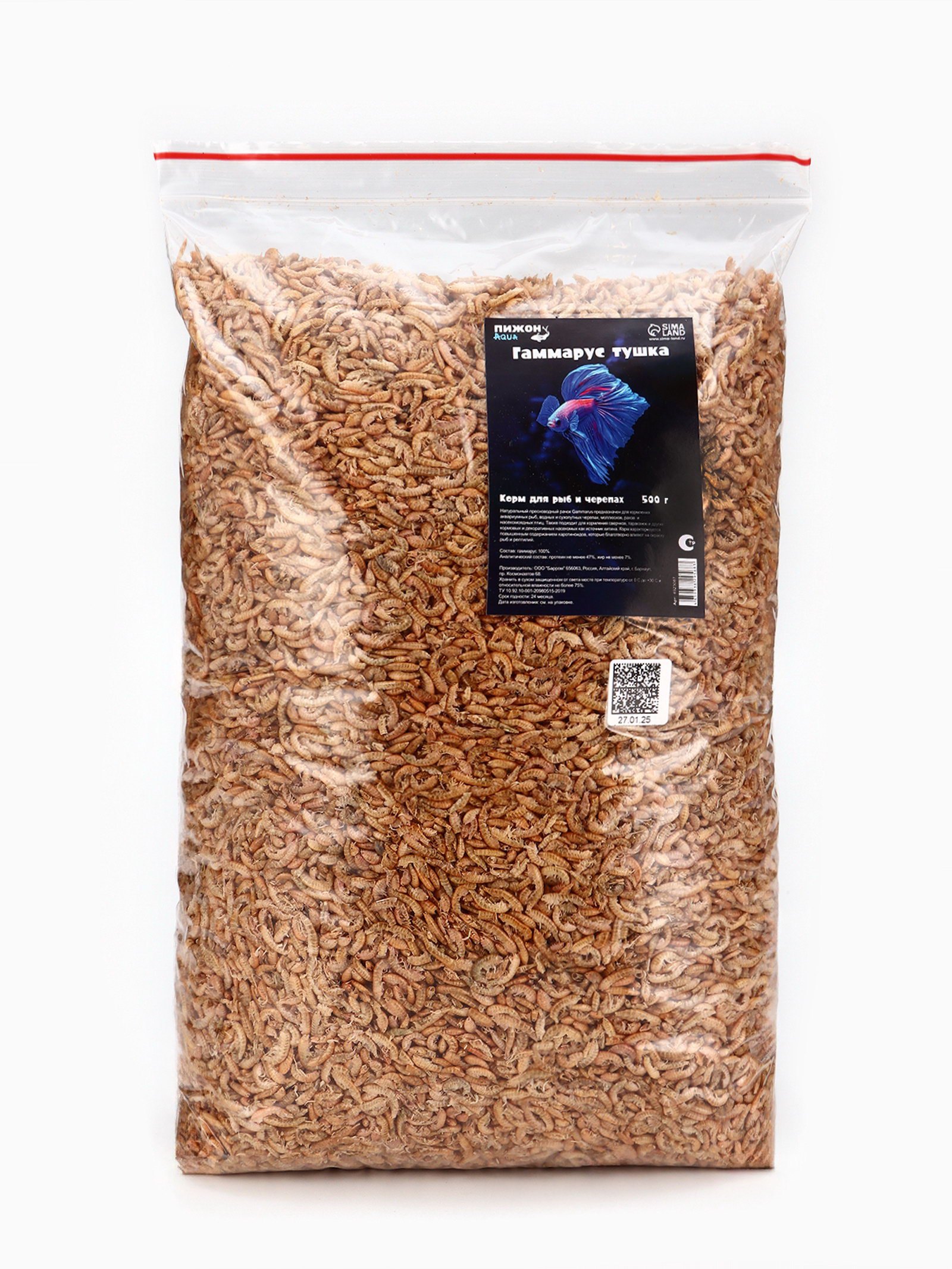 Корм для рыб и черепах "Пижон" гаммарус тушка, 500 г, Пижон Аква, Россия