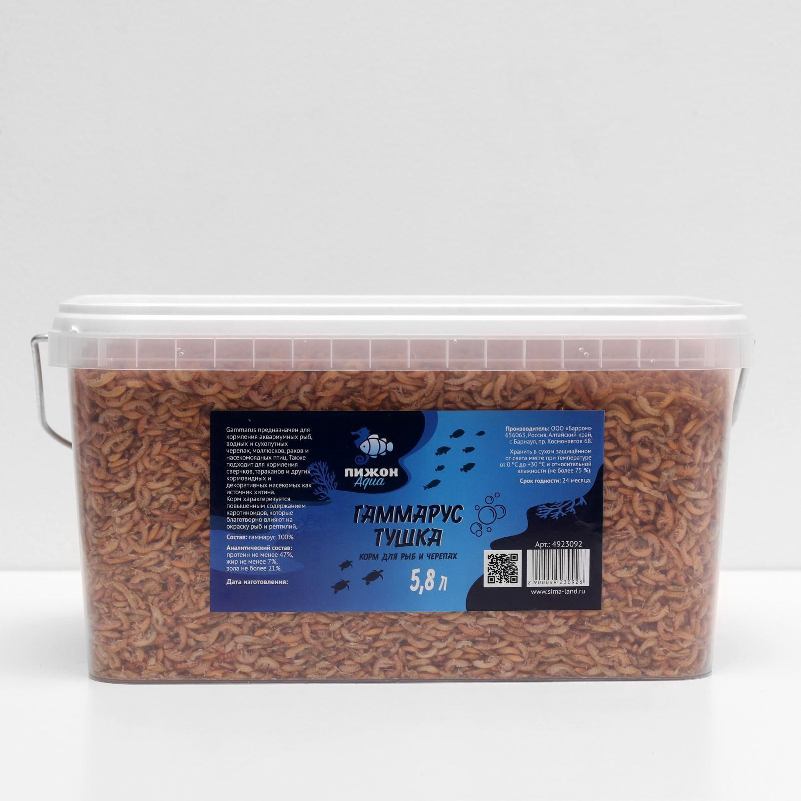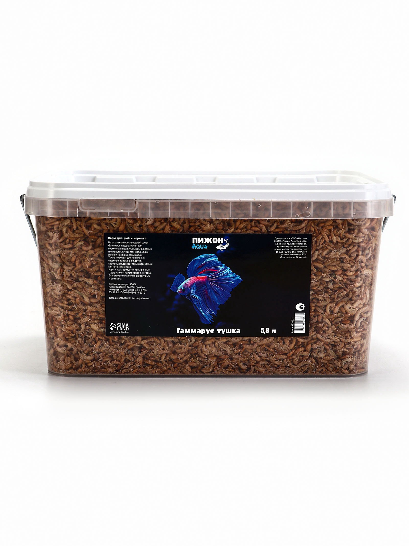 Корм для рыб и черепах "Пижон" гаммарус тушка, ведро, 5.8 л, Пижон Аква, Россия