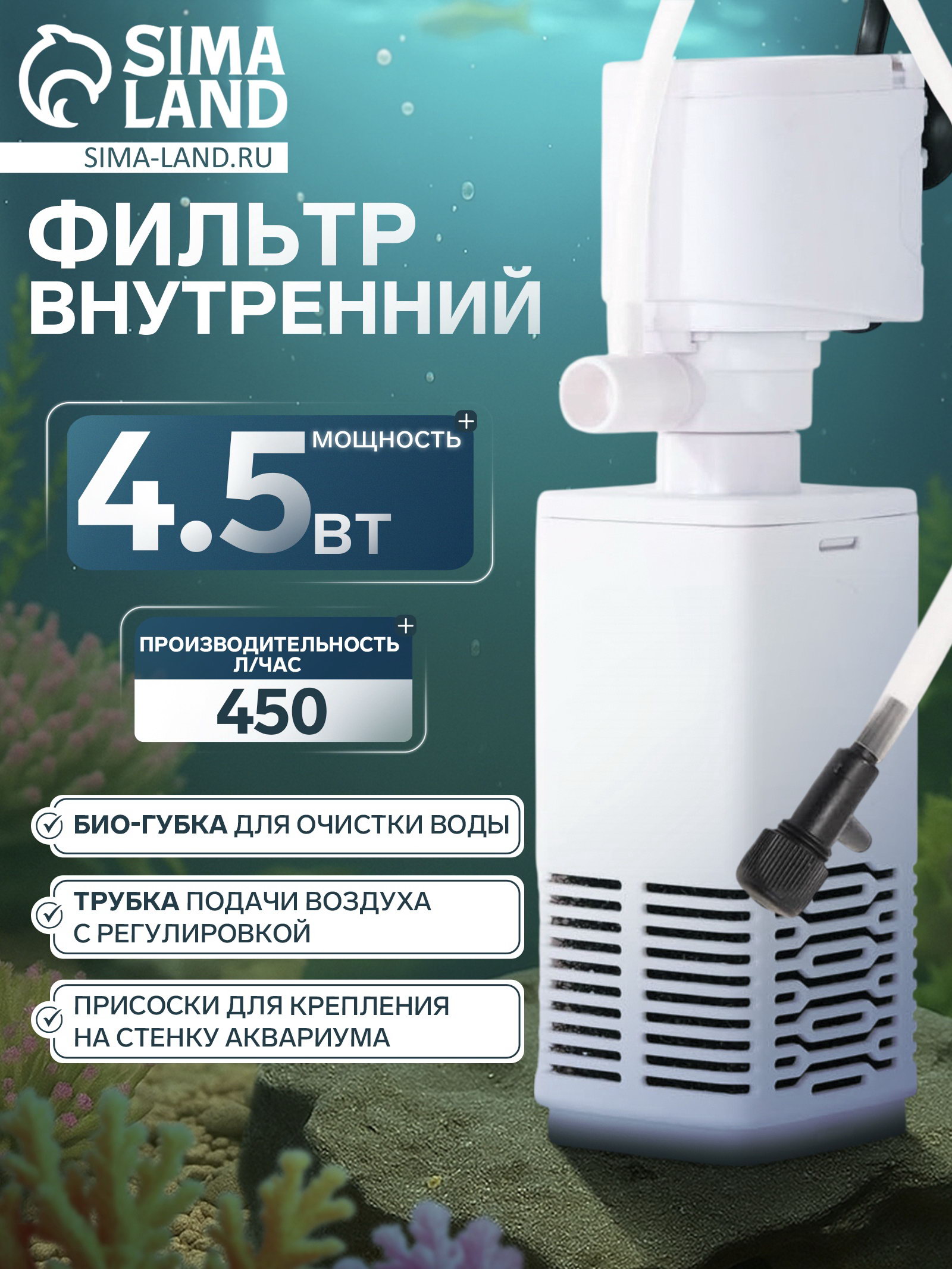 Фильтр внутренний JY-450F, 450 л/ч, 4.5 Вт, JINGYE, Китай