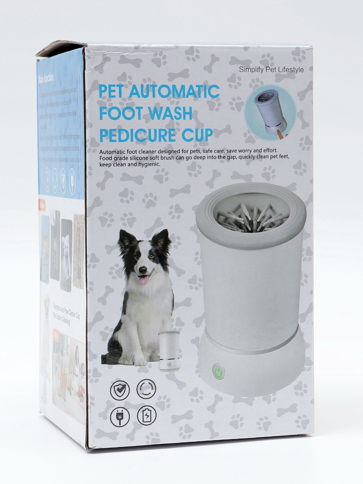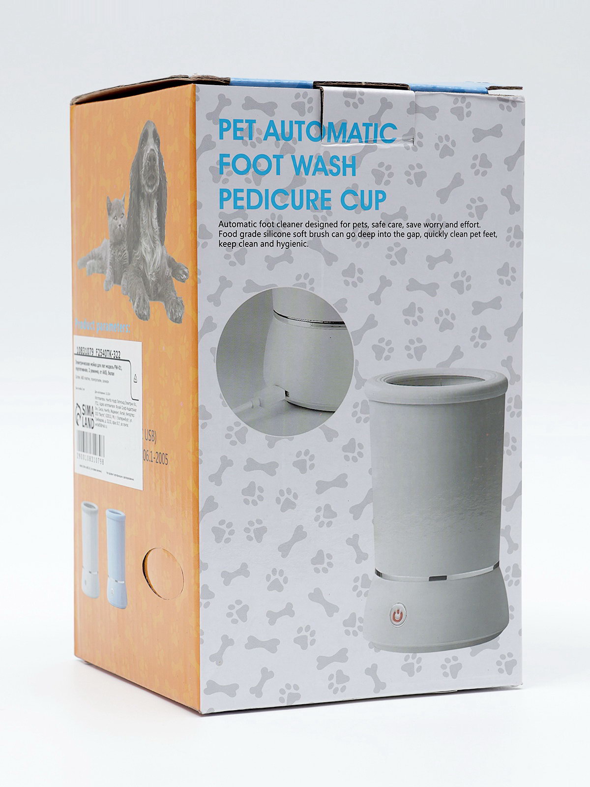 Лапомойка для собак и кошек FW-01, автоматическая, от батареек, белая, 10.8x10.8x17.5 см., Китай