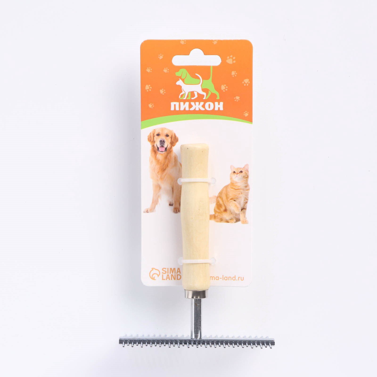 Расчёска перпендикулярная для шерсти Wood двухсторонняя, деревянная ручка, 9.5x12x5.5 см., Пижон, Китай